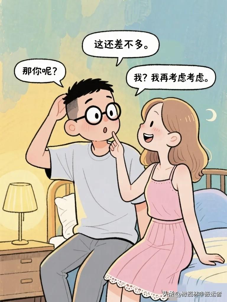 搞笑漫画:深夜妻子:"如果重来一次,你还会选我吗?" … 妻子:"你想这么久?" 丈夫:"我在想怎么回答显得真诚又不油腻。"夫妻日常漫画