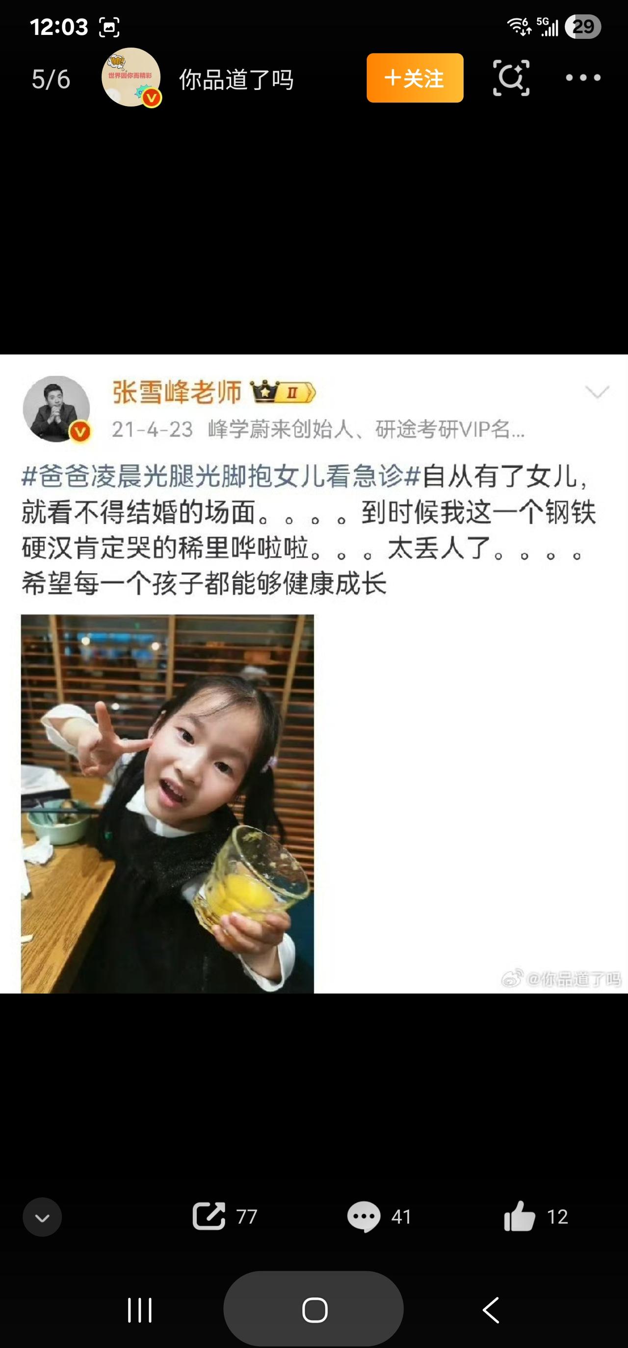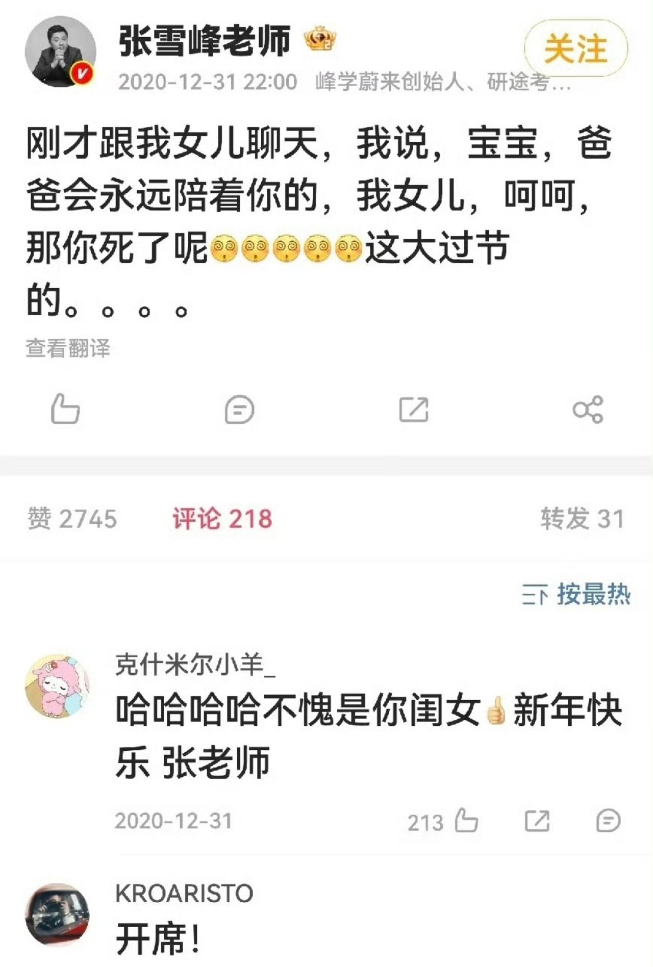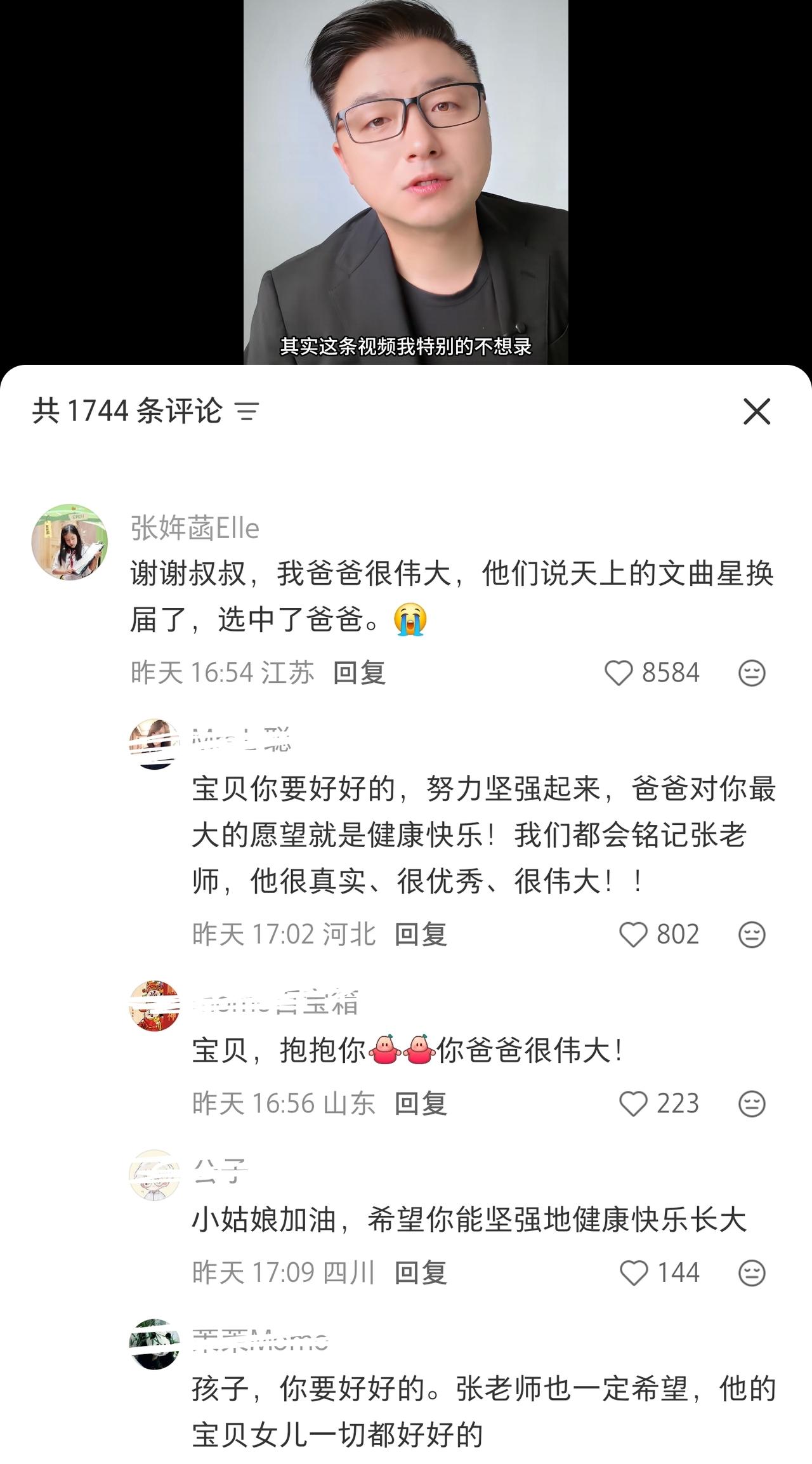 张雪峰女儿的这条留言,眼泪瞬间就绷不住了。 主持人沈南发文悼念张雪峰,谢谢他为寒门学子搭起了向上的梯子。 而这个刚失去父亲、正处在人生最痛时刻的小姑娘,回复的第一句话,是恭恭敬敬的一句 “谢谢叔叔”。 紧接着那句让全网泪目的话,更是看得人鼻酸到不行:“我爸爸很伟大,他们说天上的文曲星换届了,选中了爸爸。” 才十几岁的孩子,没有歇斯底里的哭诉,没有拿悲伤博眼球,只用一句话,给了父亲一生最浪漫也最精准的注解。 既藏了最深的思念,又温柔接住了全网的意难平。 真的太懂什么叫刻进骨子里的家教了!她完完全全懂爸爸一辈子的坚守与价值。 这份通透、体面与共情力,就是最好的教育成果。 小姑娘一定要好好长大,你爸爸真的很伟大。