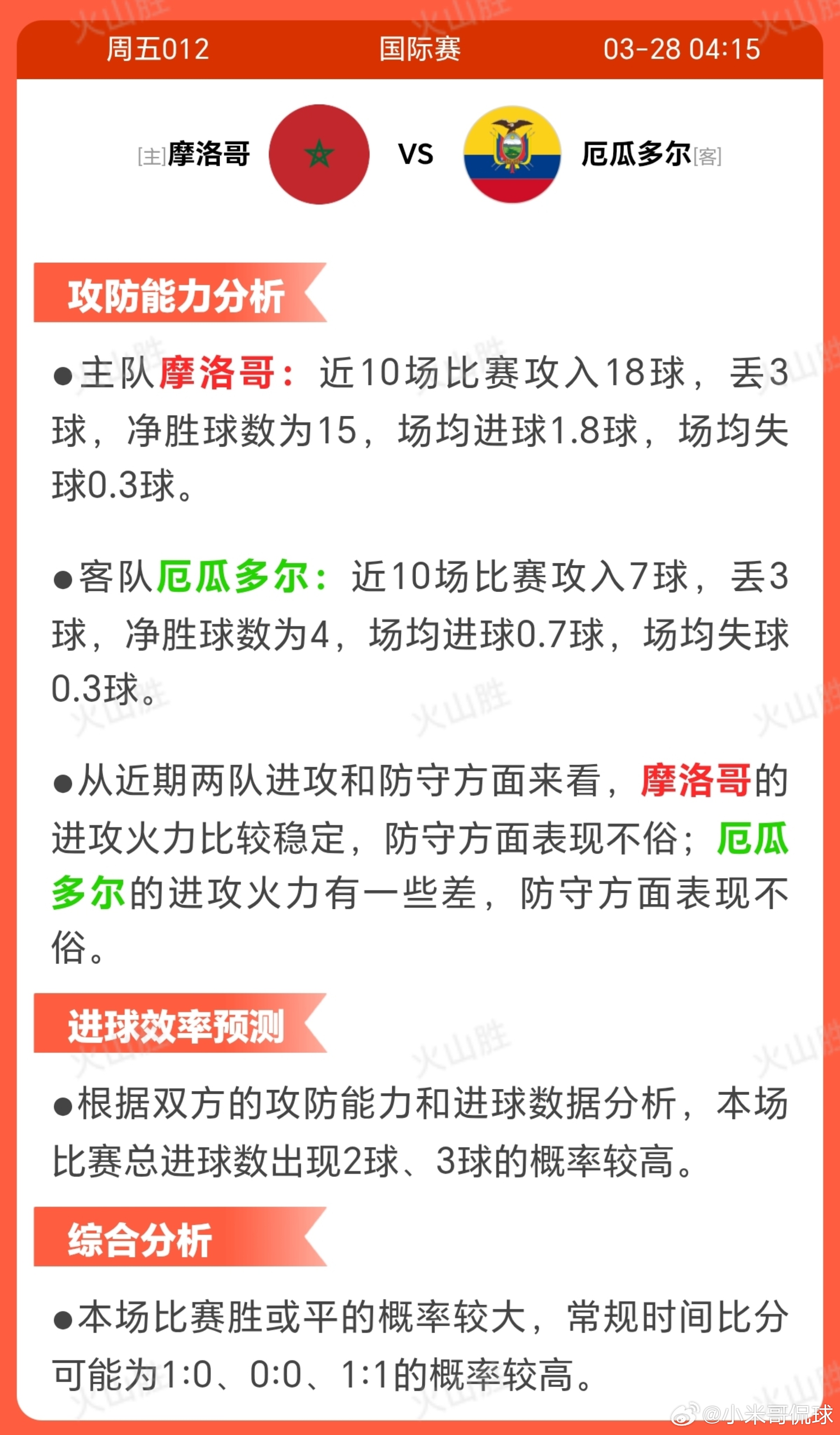 摩洛哥VS厄瓜多尔摩洛哥近10场战绩强势(7胜3平),胜率远超厄瓜多尔,士气高昂且处于上升阶段。 后卫马兹拉维因病缺阵,防守端存在隐患,但整体实力支撑下心理压力相对较小。 相比主队伤停影响,客队需维持连胜势头,避免轻敌。 足球 厄瓜多尔近10场保持不败但平局居多(3 胜7平),相比摩洛哥的高胜率,稳定性虽强但进攻效率偏低,可能影响士气。 中锋罗德里格斯和中前卫梅尔卡多伤缺, 进攻组织受挫,心理压力因关键球员缺阵而加剧。 整体趋势显示防守稳固但胜率不足,需应对客队强势。每日足球五大联赛