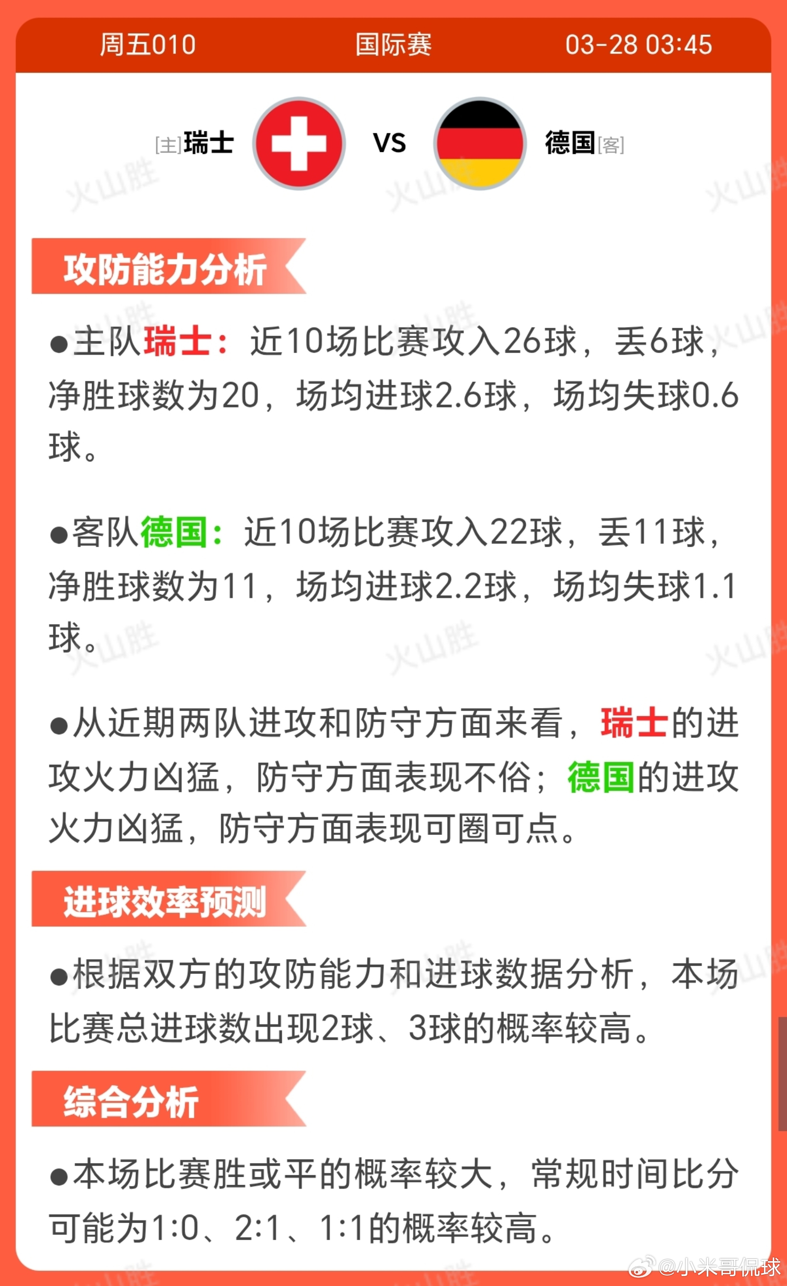 瑞士VS德国瑞士队近期状态极为稳定,近十场各项赛事保持不败,豪取七胜三平,展现出强劲的延续性和高昂的士气。 球队目前无伤停困扰,阵容完整度极佳, 有利于战术执行与球员间默契。 然而,历史交锋记录显示瑞士队面对德国处于明显下风,过去七次交手仅获一胜,且有三场失利。 这种往绩劣势可能构成潜在的心理挑战, 球队能否克服对阵德国时的历史包袱,将其高昂的竞技状态转化为对强敌的实际胜利,将是关键。尽管没有积分排名压力,但持续的良好表现无疑会提升球队自信。 足球 德国队近期表现存在一定波动,近十场比赛胜负各半(六胜一平三负),稳定性不如瑞士。 不过,球队在历史交锋中占据优势,过去七场对瑞士取得三胜三平仅一负。 往绩上的优势地位可能在一定程度上缓解心理压力。 阵容方面同样全员健康,保证了主教练的战术选择余地。 德国队需要关注的是如何提升近期比赛中相对不够稳健的状态,并利用好历史交锋带来的心理优势。足球预测