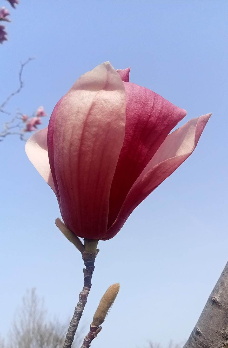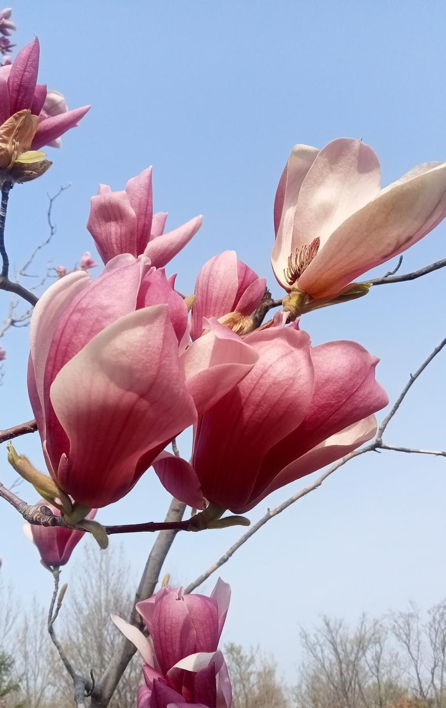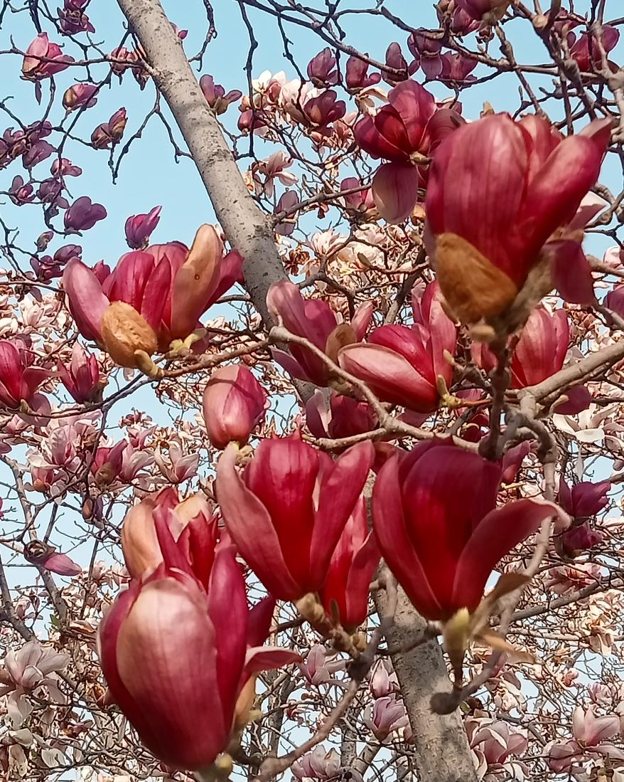最近玉兰花盛开,我也忍不住拍拍拍。我拍的玉兰花,白得像雪,花瓣层层舒展,在蓝天的
