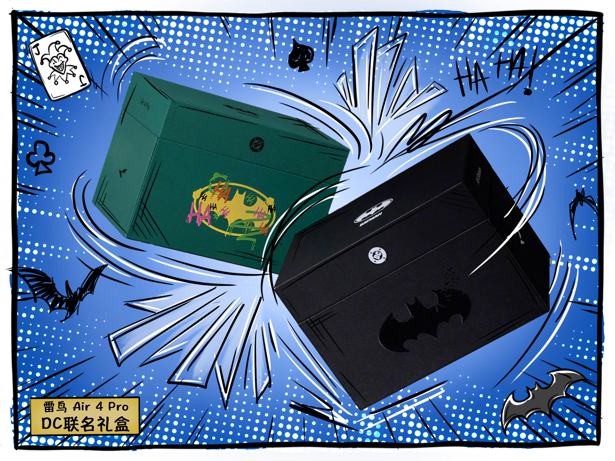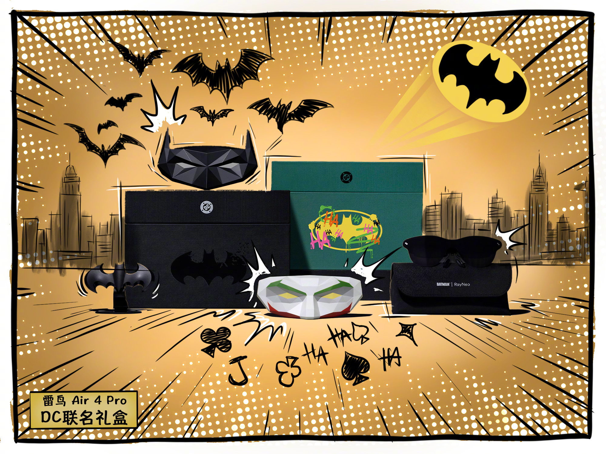 🦇DC官方与雷鸟深度合作,推出“正义限定版”与“混沌限定版”礼盒,独家定制“蝙蝠侠”与“小丑”专属遮光罩,镜腿上还有蝙蝠元素镭射LOGO,氛围感与沉浸感双双拉满!