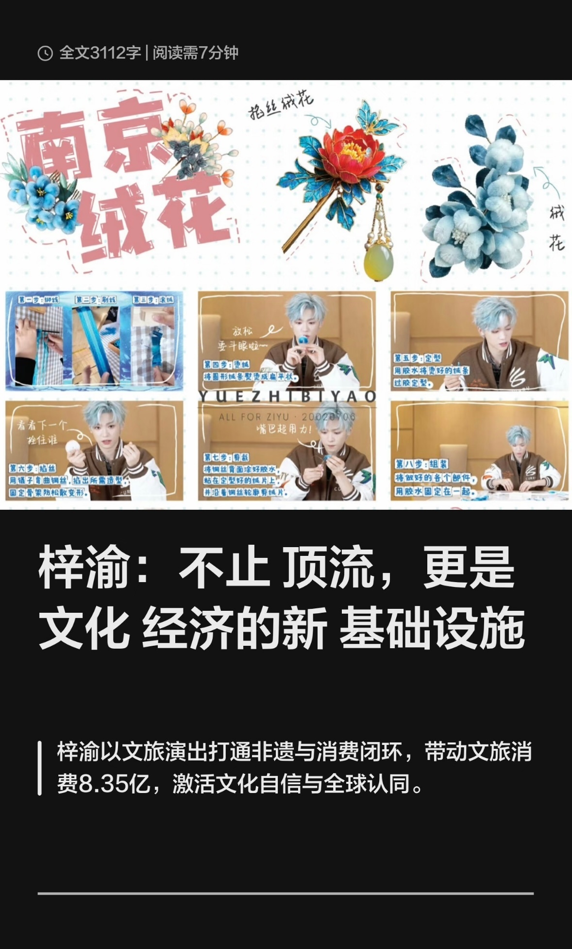 梓渝不止是顶流梓渝不止是顶流艺人,更是文化新基建!以热爱为桥,让非遗走进日常,撬动全球目光向中国汇聚,验证全新文化经济范式