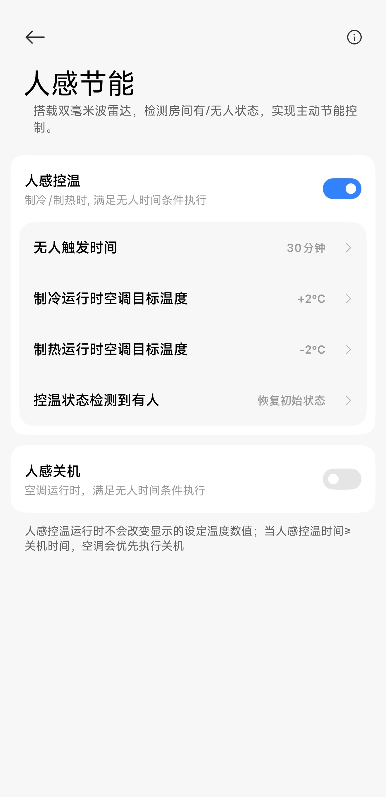 有了毫米波雷达之后,空调也变得更加智能。工作时感应到人靠近可以自动切换成柔风模式,感应到人离开房间也可以自动关机,空调也有很多卷点。米家空调人感风小米空调10年免费包修家装焕新就选小米