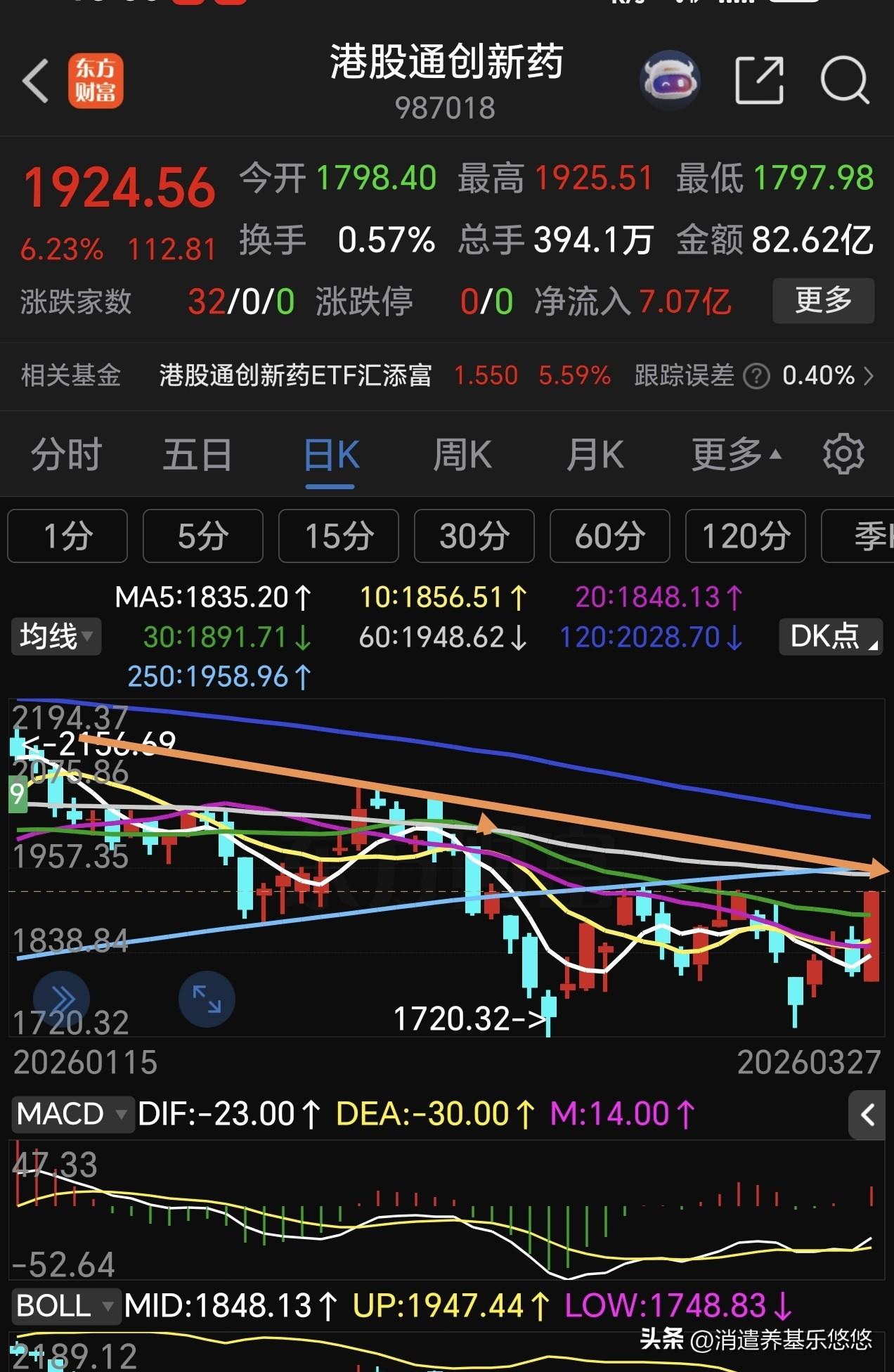 港股通创新药能源金属如何操作? 下图是港股通创新药及能源金属日线走势图,港股通创新药大涨超6%,目前已经接近上方60日线及年线压力位,再上有点难度,稳健的可以分期止盈部分,激进派可以继续持仓待涨。 能源金属今天强势反弹,板块涨幅超7%,接近前期高点压力区域,稳健的可以分期止盈减仓,特别是重仓这个板块的,激进的也可以继续持仓待涨。