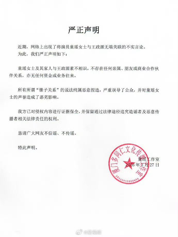 童瑶方辟谣继子传闻离谱谣言别乱传!童瑶工作室正式辟谣,所谓继子关系纯属杜撰,双方零交集零往来~造谣无成本但追责有力度,守护艺人口碑,从拒绝跟风造谣开始