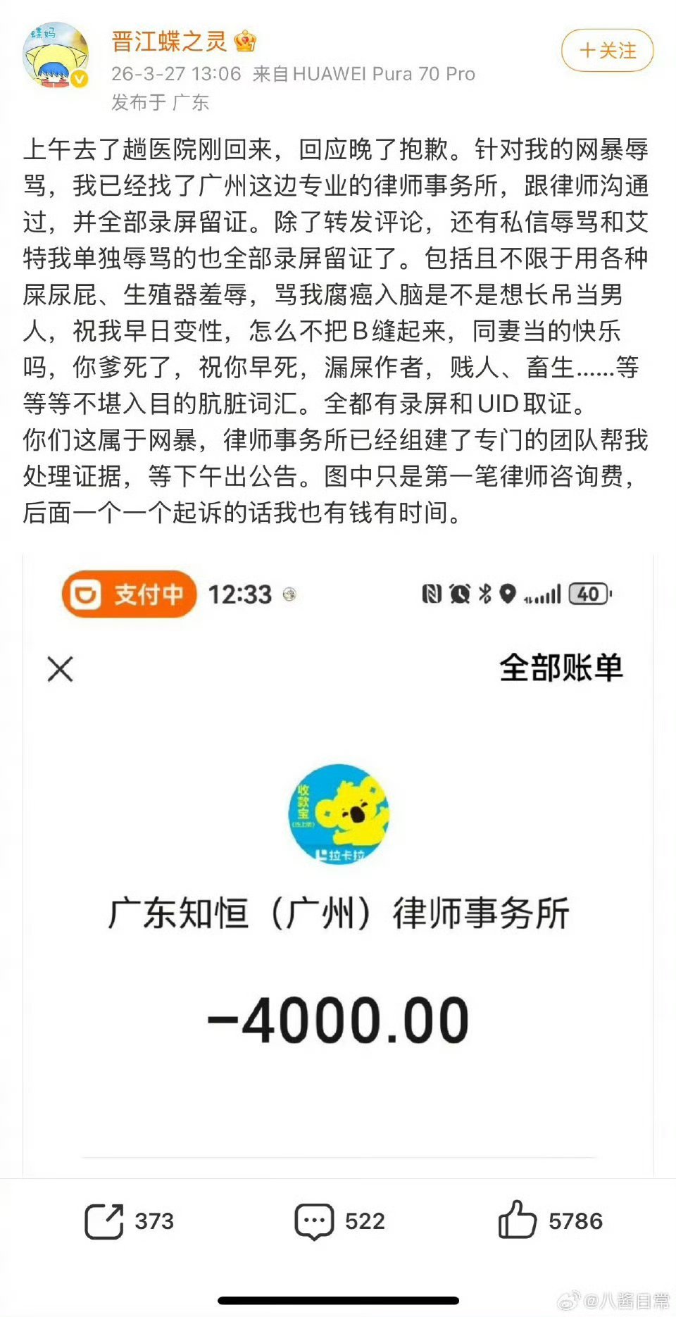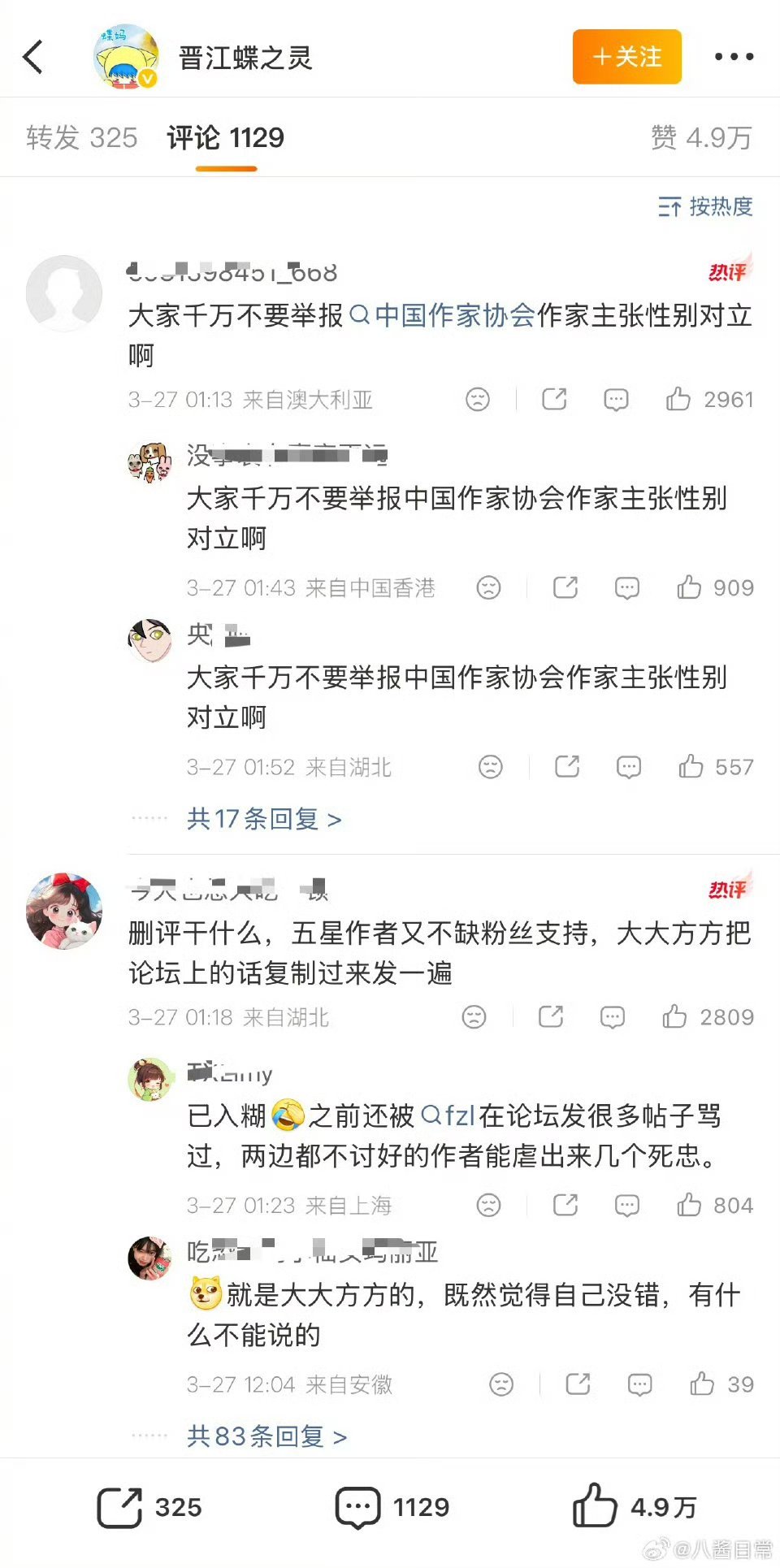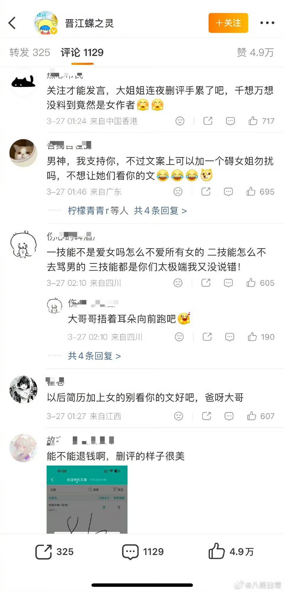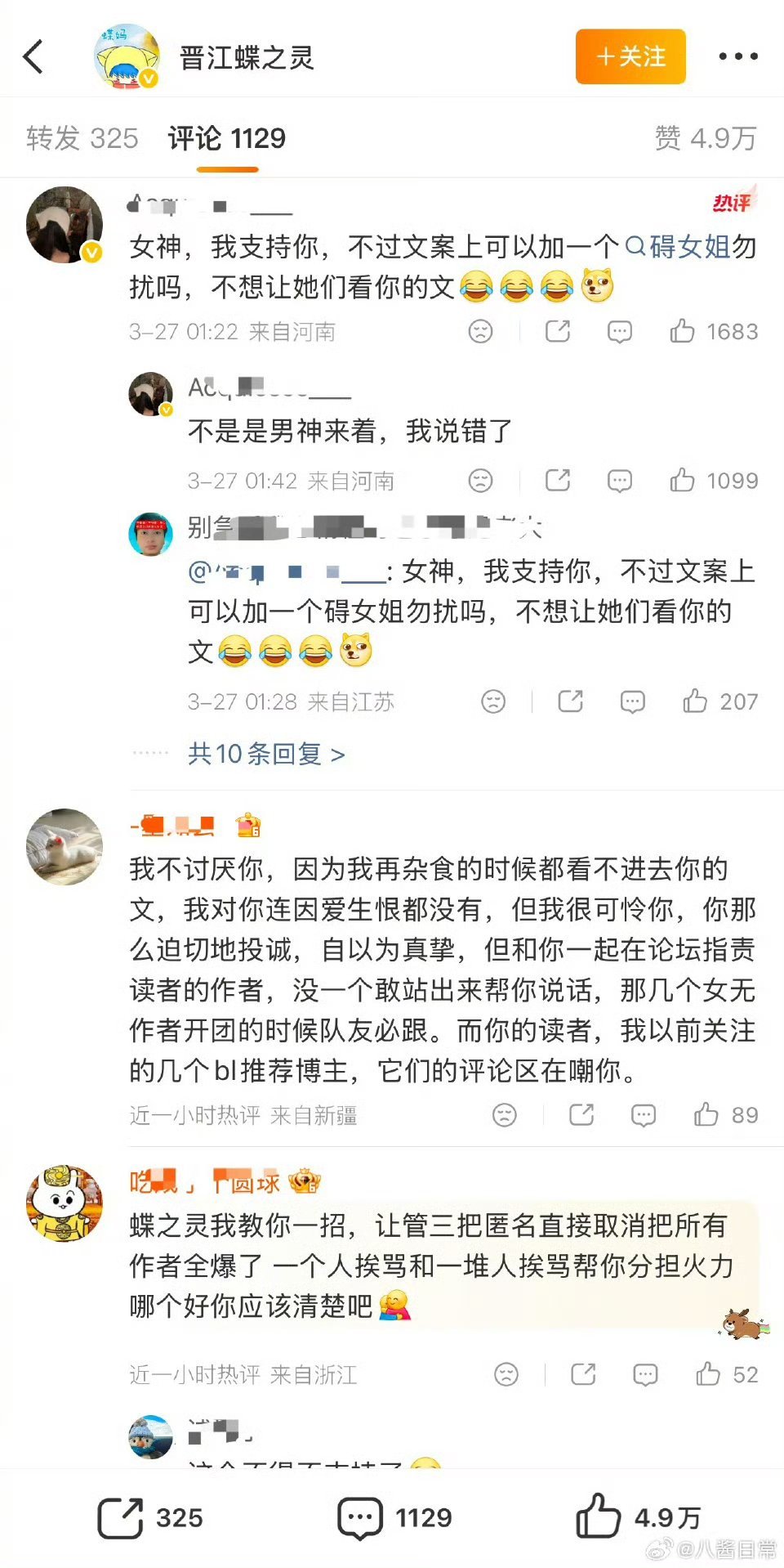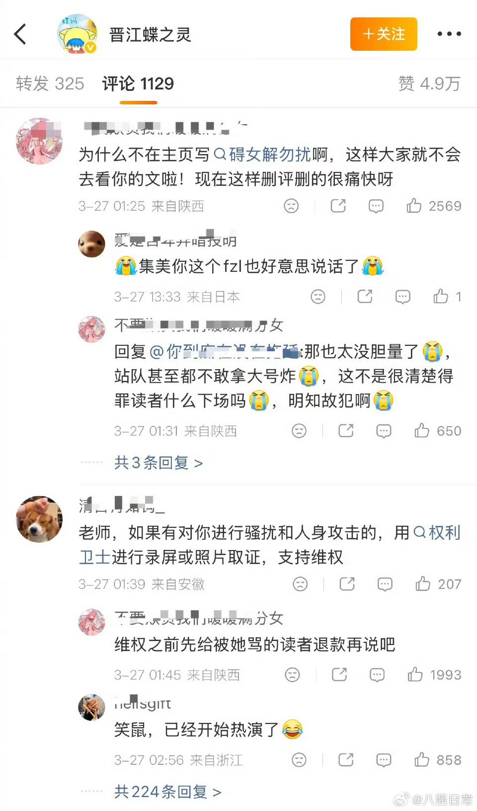 晋江蝶之灵回应蝶之灵回应被网暴 晋江蝶之灵回应被网暴,已经找了专业的律师事务所,说自己有钱有时间一个一个起诉