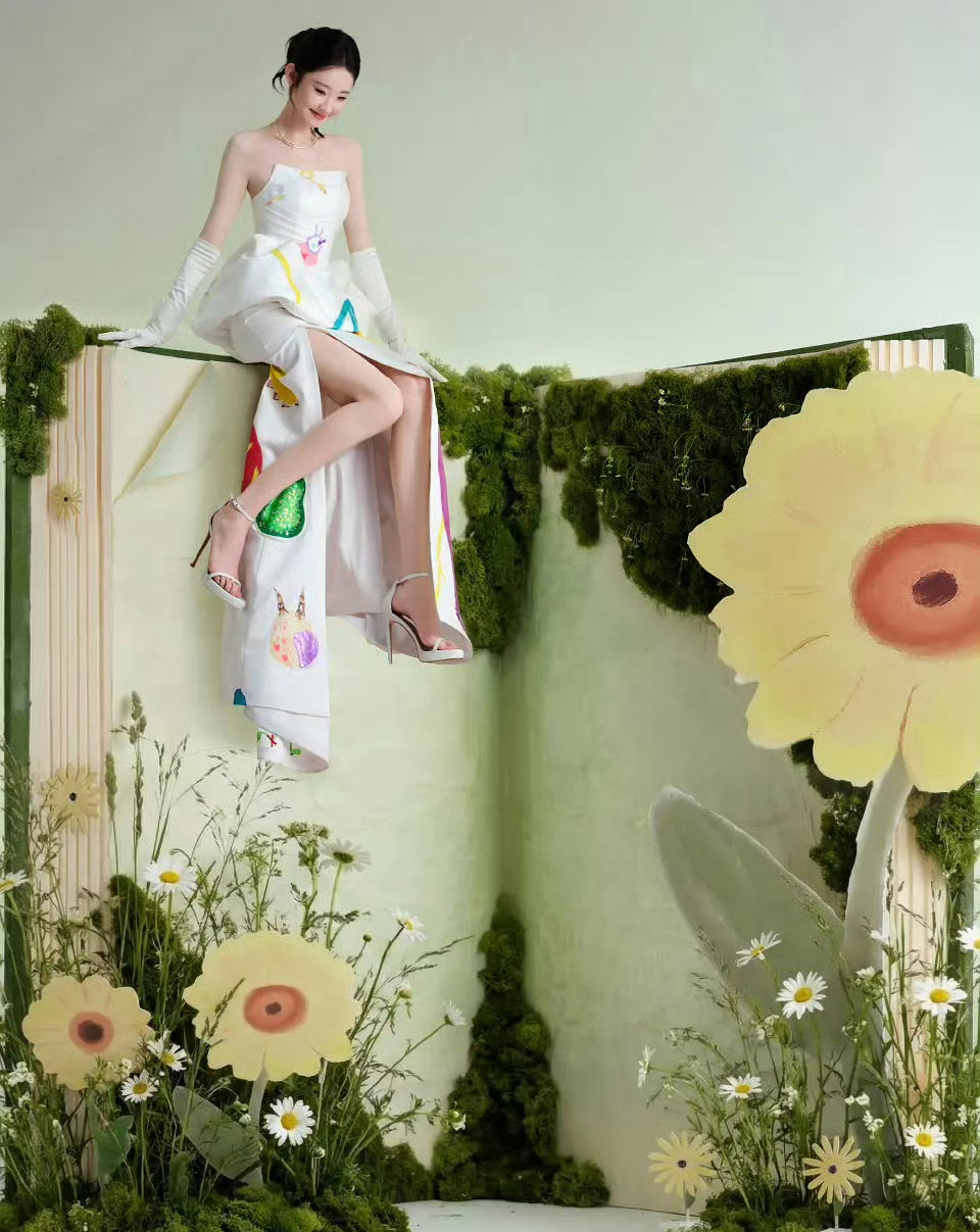 白鹿大波浪花朵裙造型,白梦妍这期更是美飞边子了