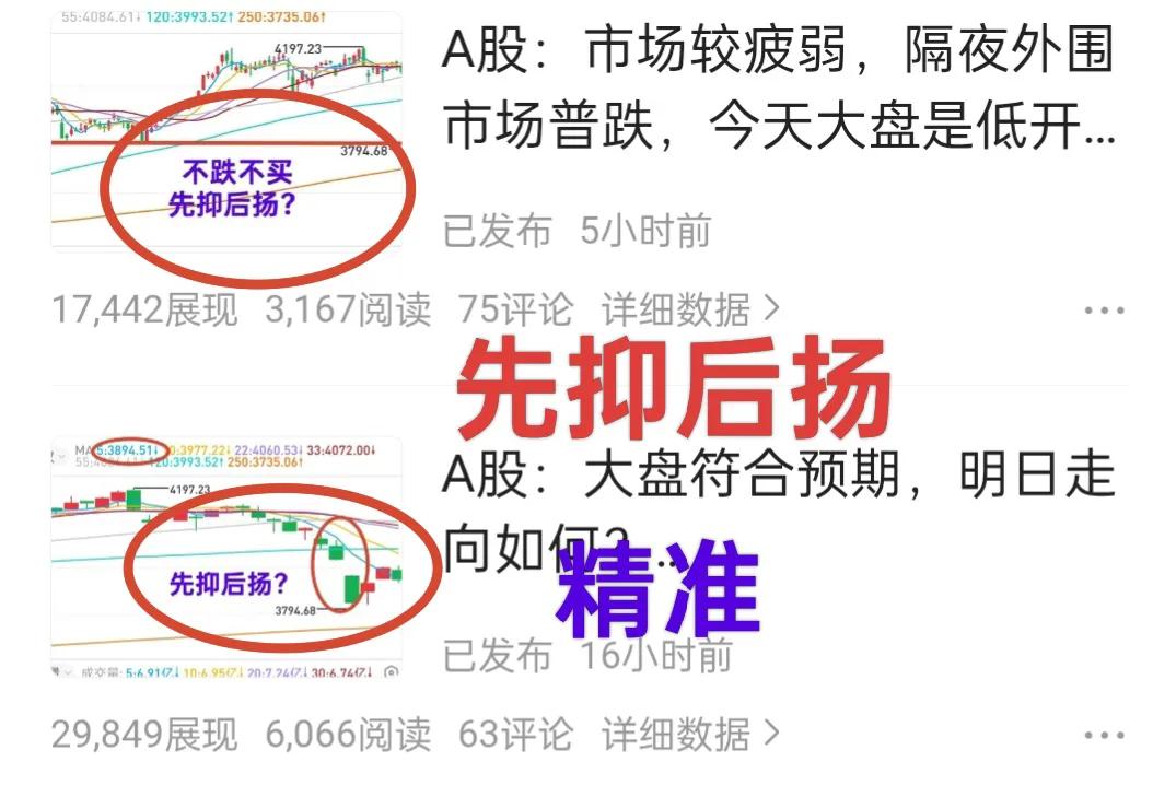 A股:大盘先抑后扬,符合预期! 今天主力很给面子,从整体走势到创新药板块,都没有逃过渔夫的算计。[大笑] 这一周的操作节奏堪称完美。 周一抄底,周二加仓,周三减仓,周五抄底。 早盘沪深两市成交金额为1.14万亿,估计全天成交金额1.8万亿左右。 周三成交金额为2.18万亿,周四成交金额为1.94万亿。 从上述数据看出,市场成交金额呈现逐渐缩小的趋势。 缩量上涨,正常吗? 渔夫讲过,主力是在4100~4200点区域跑路的,也就是说4100~4200点属于密集成交区域。 周一是跳空下跌的,同时成交量也放大了。 这表明,主力在周一进场抄底了,而且跳空缺口表明市场存在“成本断档”。 这种情况下,缩量上涨是合理的。 当然,由于市场缩量,意味着大盘难以走出持续大幅上涨的趋势,震荡在所难免。这就要求投资者操作的时候谨慎追高。 估计行情会延续到下周初。 昨天午评的时候,渔夫提到了创新药板块,预计该板块具有中线机会。 个人观点,仅供交流,不构成投资建议!理财有风险,投资需谨慎! 大盘分析行情