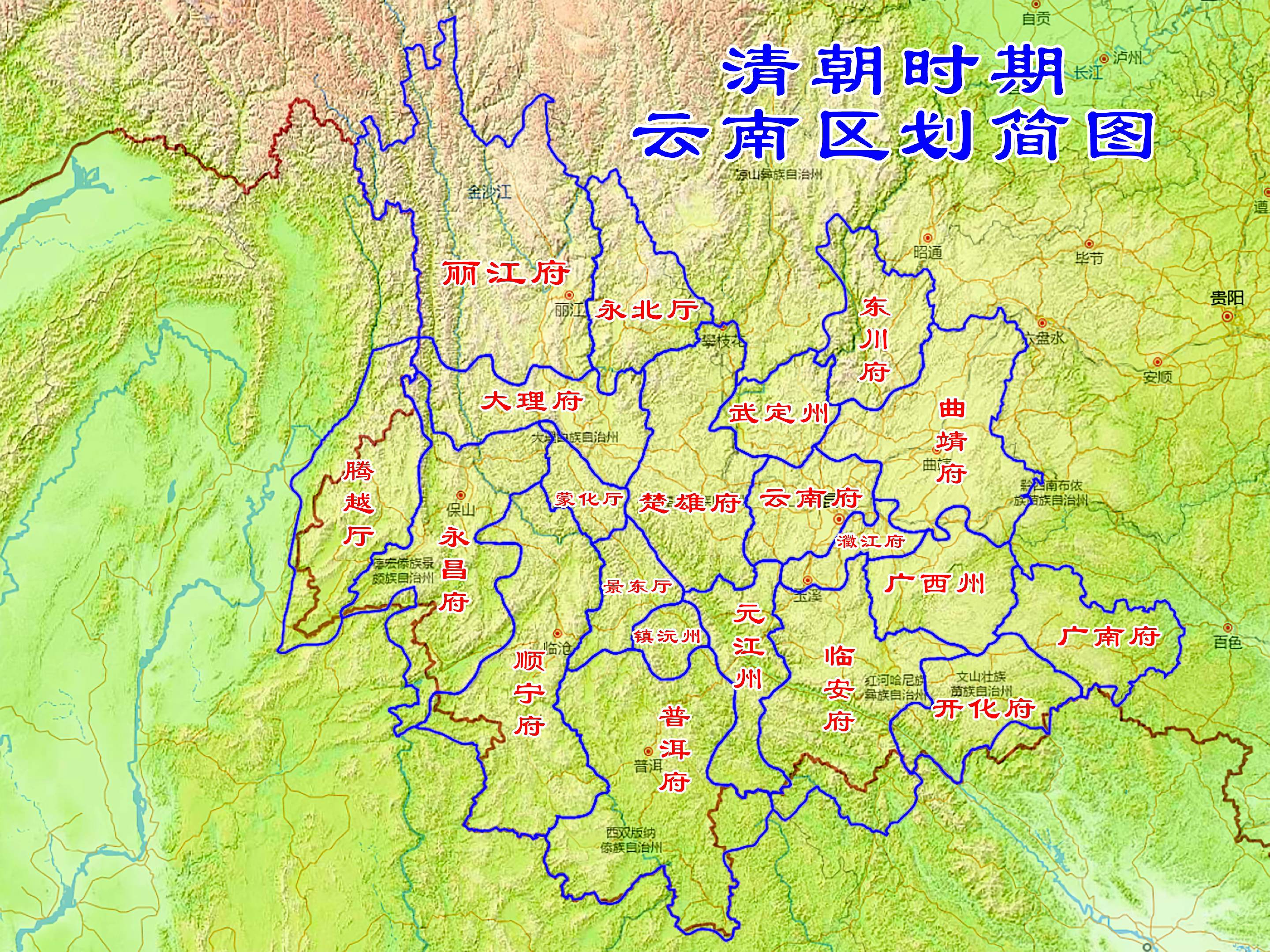 清朝时期云南区划简图。公元1820年。