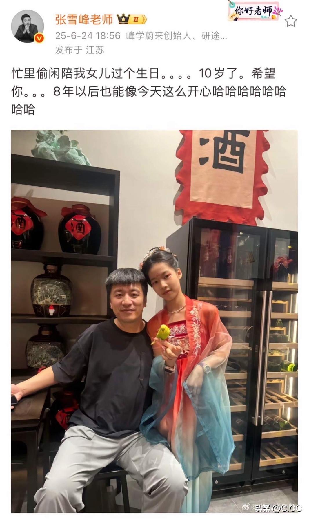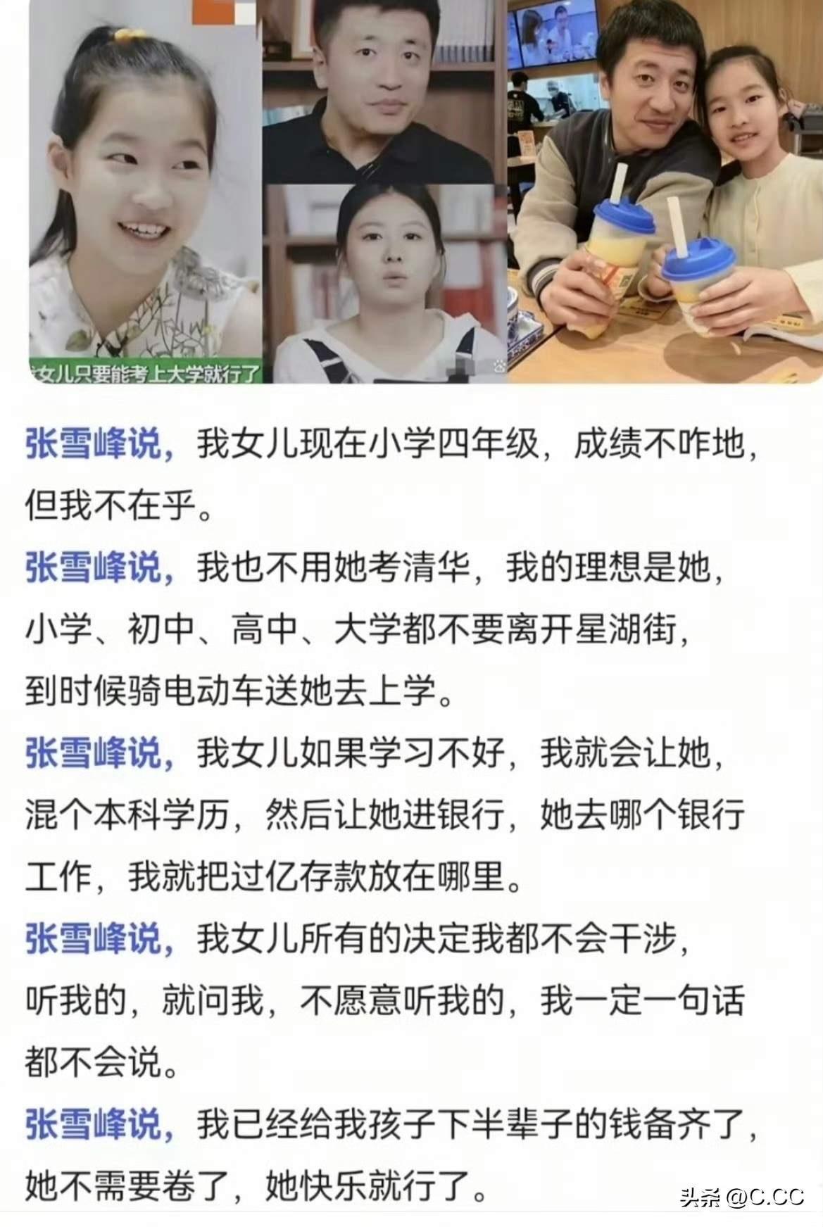 张雪峰女儿张姩菡缅怀爸爸:“我爸爸很伟大,他们说天上的文曲星换届了,选中了我爸爸。”看到后泪目,好心疼呀,抱抱宝贝[拥抱][拥抱][拥抱] 看了张雪峰的微博,妥妥的女儿奴,看到他写的“自从有了女儿,就看不得结婚的场面……到时候我这一个钢铁硬汉肯定哭的稀里哗啦啦……太丢人了。”忍不住落泪,父爱真的是刻在骨子里的温柔与牵挂,拼尽全力想护女儿一生周全,却没能陪她走到穿婚纱的那天 听他说女儿从小学到大学最好都在一条街 从家到学校骑车就能送过去 他说孩子以后工作在银行 凭他的公司流水就行 愿他的拳拳爱女之心能保佑她顺遂 他是一位好爸爸,他也是一个好丈夫是个顶天立地的男子汉,一个有温度的男人,不管是对家长,对学生,对员工,都做到了有责任有担当有温度,特别是对家人关爱有加,无微不至,非常有担当的男人👍将来这孩子找另外一半,也是参照自己爸爸的榜样是一个有责任有担当的男人,这些都是非常宝贵的精神财富,张雪峰老师走了,但是给孩子的家产,相信也可以为孩子遮风挡雨,只不过这孩子一辈子都要怀念这么好的爸爸 才11岁张姩菡失去了最爱她的爸爸,愿这份沉重的爱能化作她脚下的土壤,让她在未来的风雨中,依然能感受到来自父爱的远程托举。 好孩子,在没有爸爸的岁月里,希望你健康快乐成长、平安顺遂。 替张雪峰给其女儿写的告别: 亲爱的女儿,我不能守护你一生了,刚才跑完步,心脏可能觉得我太卷,它先躺平了。 老天爷对一个男人最大的奖励,就是给他一个女 儿 很抱歉以后我不能再送你上学了,缺席你毕业典礼上的拥抱,不能陪你过生日了,缺席你披着婚纱出嫁时被搀扶的送行…… 最后,别为我难过,没有我的日子,照顾好自己和你妈妈,记得按时吃饭,少熬夜,别学我。愿我的小荷花未来平安顺遂。 永远爱你的爸爸