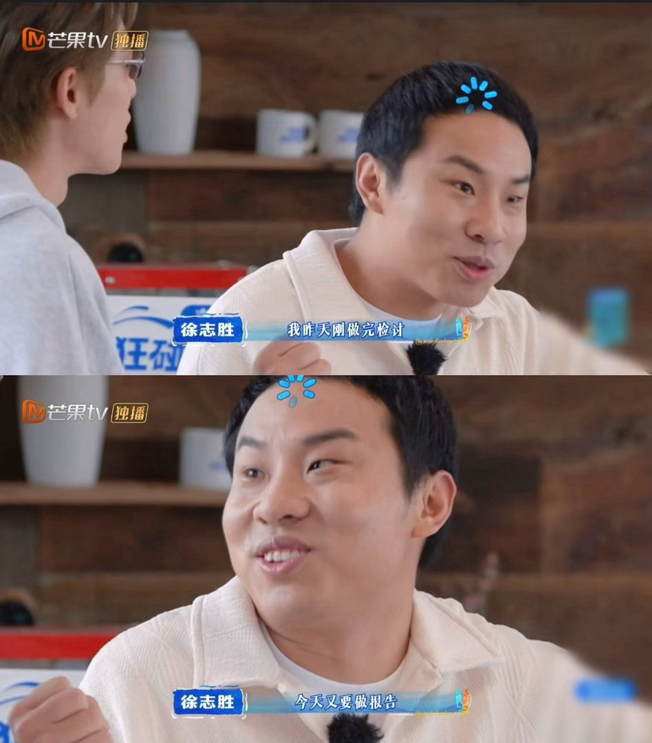 徐志胜做完检讨做报告亲爱的客栈 王鹤棣找徐志胜约谈的时候,胜子脸上写满了“又来活了”。做完检讨做报告,交完企划书还得汇报,打工人被安排得明明白白。他那个生无可恋的表情,隔着屏幕都感受到打工人的不易。