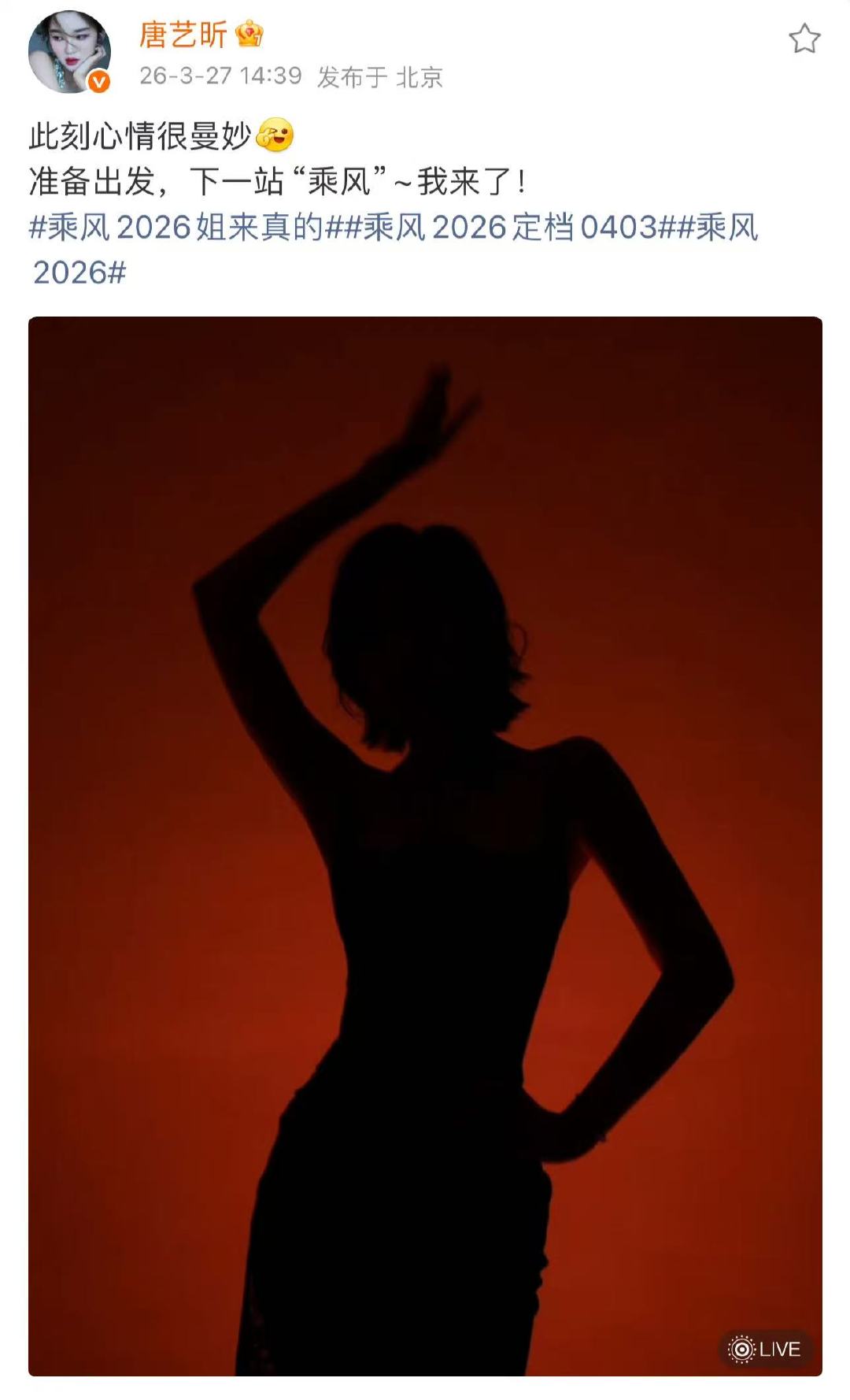 唐艺昕官宣加盟乘风2026唐艺昕加盟乘风2026唐艺昕官宣加盟乘风2026,很曼