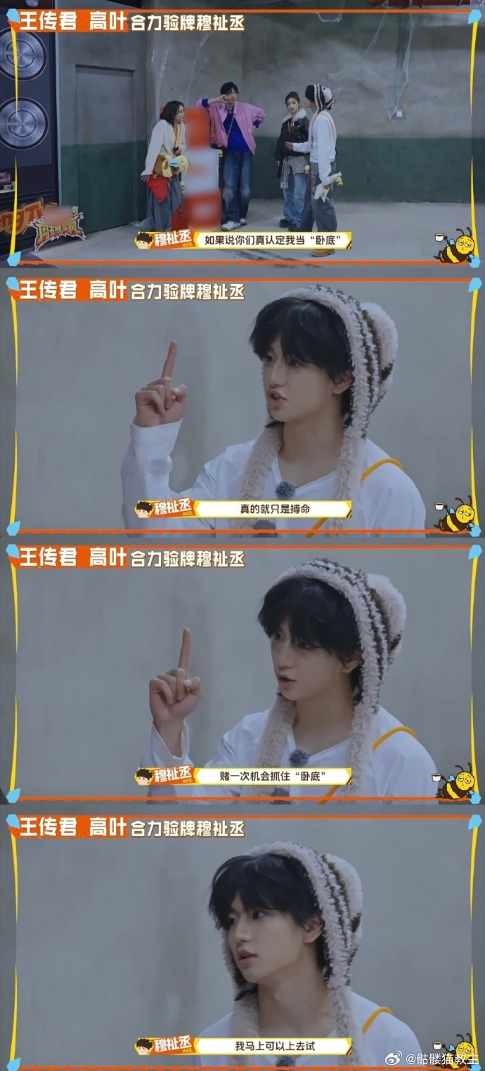 王传君高叶验牌穆祉丞周五晚高疯笑到打鸣!王传君高叶联手怀疑小穆是卧底,当场就验牌,结果人家自证清白,俩人脸瞬间垮了,愧疚心疼全写在脸上,小穆站那儿委屈又乖巧的样子,反差萌直接拉满,这综艺效果绝了