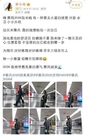 李小冉希望初舞台别摔跤乘风2026 谁懂啊!看到李小冉说“50岁正是闯的年纪”瞬间破防!我们总觉得年纪大了要安稳,可姐姐却敢冲浪姐舞台,还调侃怕摔跤,这种豁达又勇敢的样子,直接圈粉一万次!