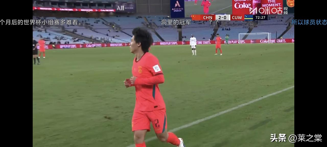 2:0,韦世豪、张玉宁各入一球,中国队取胜。从这场比赛看,邵氏执教风格正如在西海岸一样,目前这支国足经过这么调整,更具活力和攻击性。 邵佳一执教西海岸以外援带领一帮有冲击力的小将打江山。在国家队,首发阵容既有张玉宁、韦世豪、王上源等在联赛中状态上佳的老将,也有当打之年的适龄球员,如谢文能等,还有U23球员王钰栋、杨希、徐彬、拜合拉木、刘浩帆等,既有经验又有冲击力。 下半场中国队不仅攻入一球,而且在下半段还控制了场上局面,令取得世界杯参赛资格的对手也无计可施。