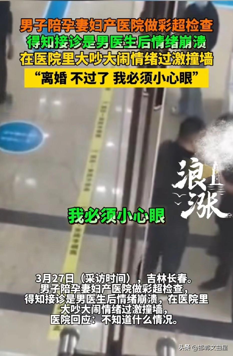 太小心眼了!男子陪妻子做孕检得知做彩超是男医生时,当场崩溃发火! 近日,吉林长春,一位男子陪孕妻到医院产检做彩超,男子发现是一名男医生操作时,瞬间情绪失控大吵大闹,甚至要撞墙。 男子表示,我无法接受别的男性触碰、检查我的妻子,必须得立刻换一名女医生做检查。 现场医护和其他孕妈家属都纷纷劝说,产检、彩超、生产时男医生其实非常普遍,很多医院产科、超声都是男医生,别小心眼了,但该男子依旧难认释怀,说,我就是小心眼,接受不了,甚至还说不过了,离婚。 有网友将这件事分享到网上后,引发不少网友都热议! 有网友说,医生眼里只有病情,没有性别。 还有网友说,孕妈安全才是第一位,没必要过度敏感。 还有网友也表示,生产时男麻醉、男助产士都很常见,妻子生孩子时就不生了? 说句心里话,作为一个男人,妻子被异性触碰检查,心里的确有点酸酸的,但是,在医学面前,性别真的没那么重要,保障孕妈和宝宝的安全,才是最该在意的事。 对此,要怎么看呢?