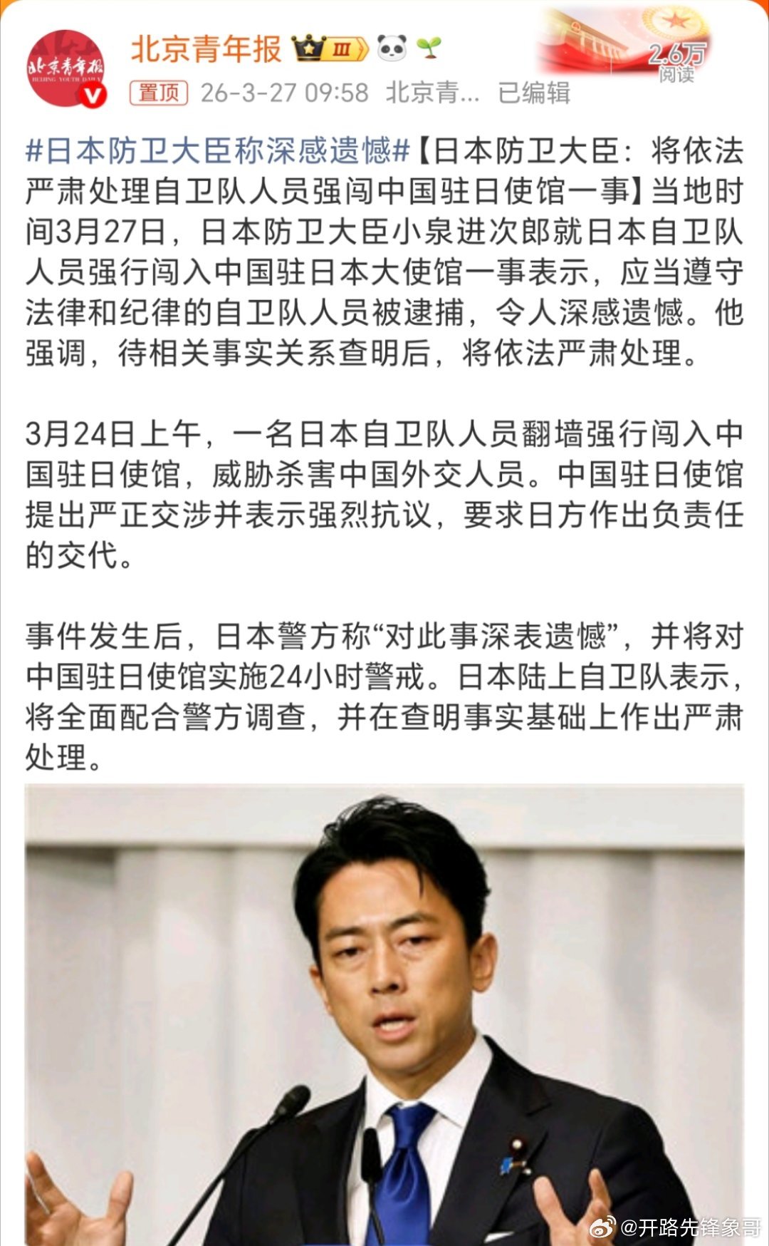 日本防卫大臣称深感遗憾TNND就一句“深感遗憾”,这么敷衍的吗?