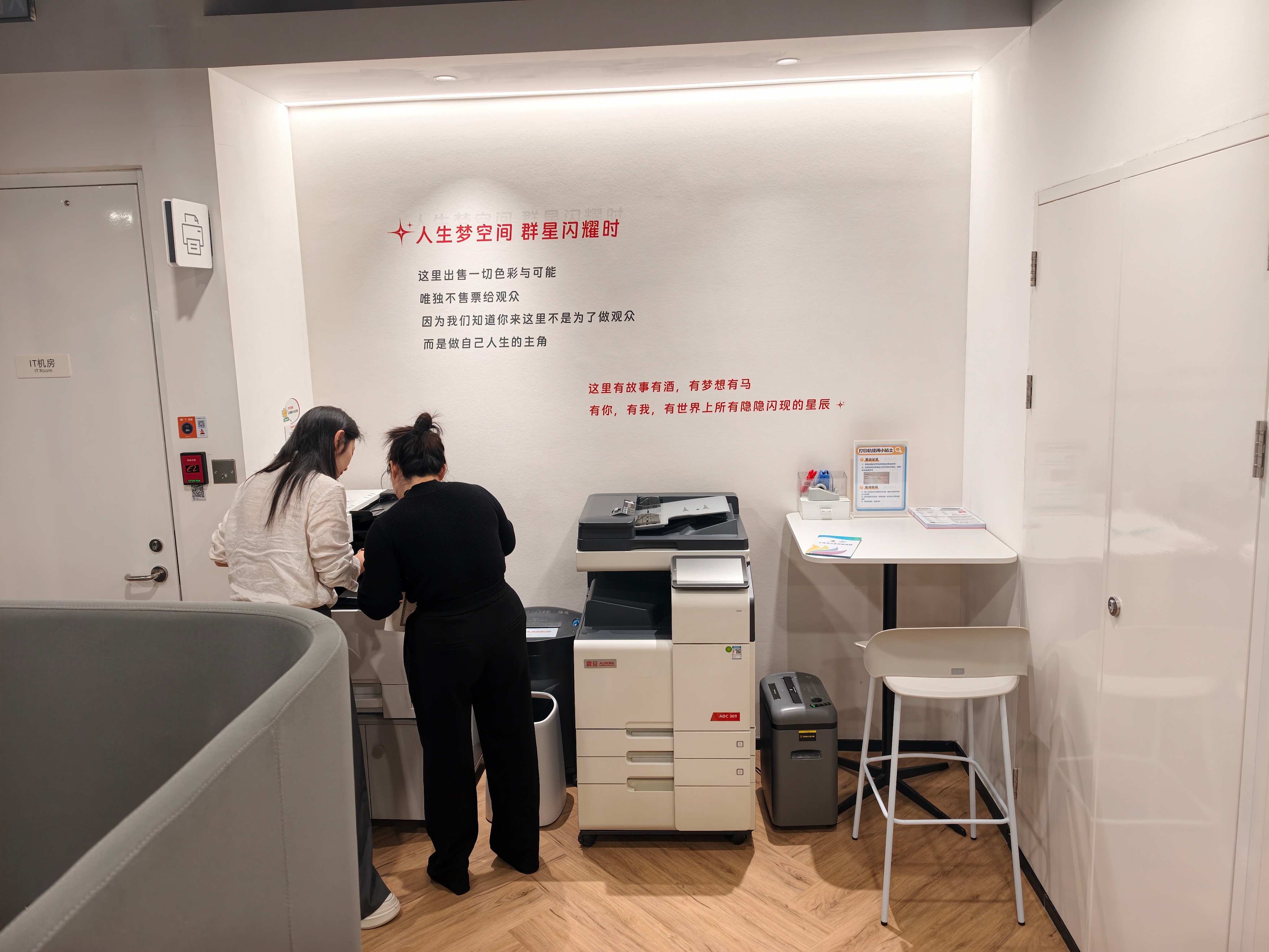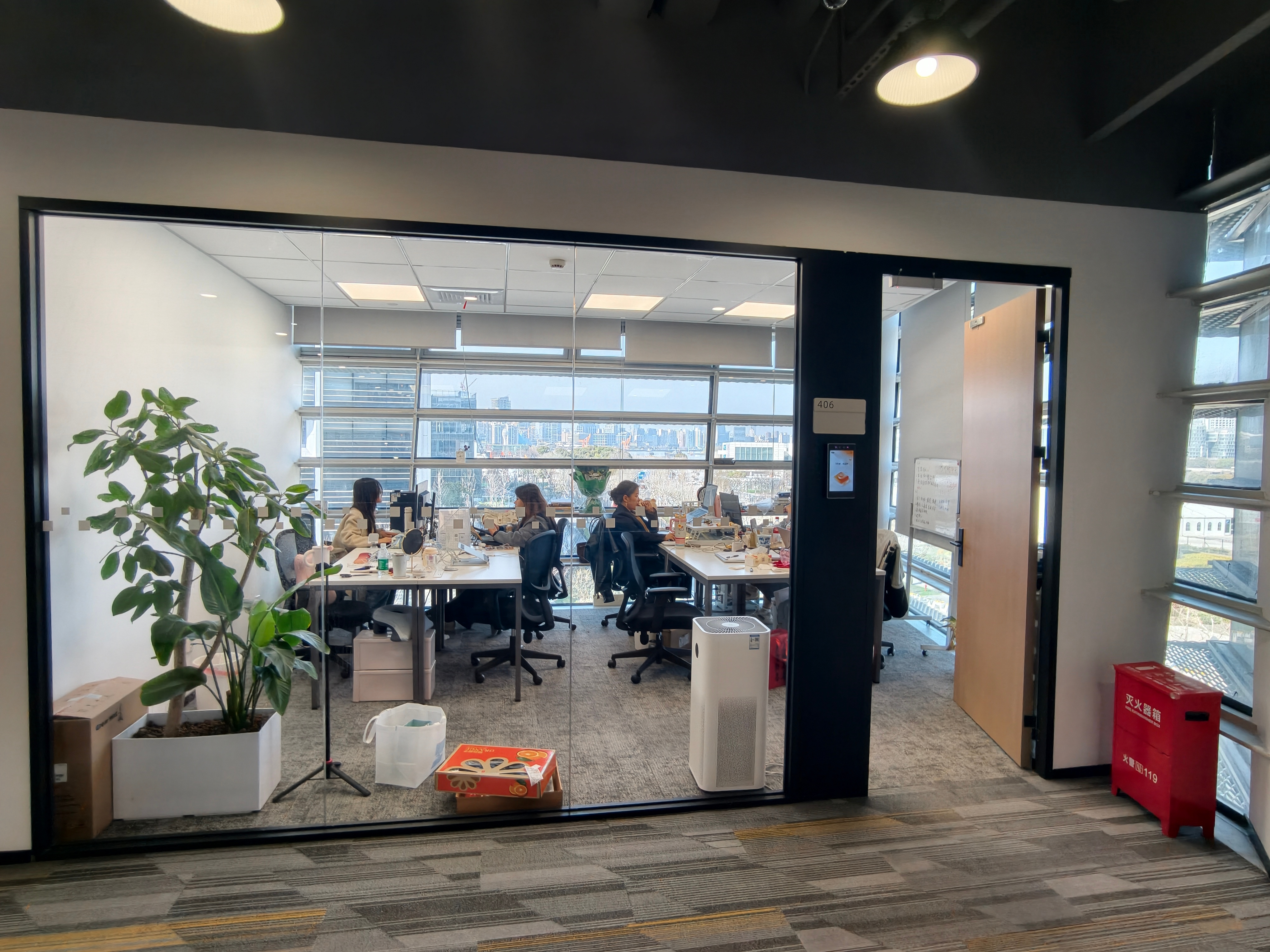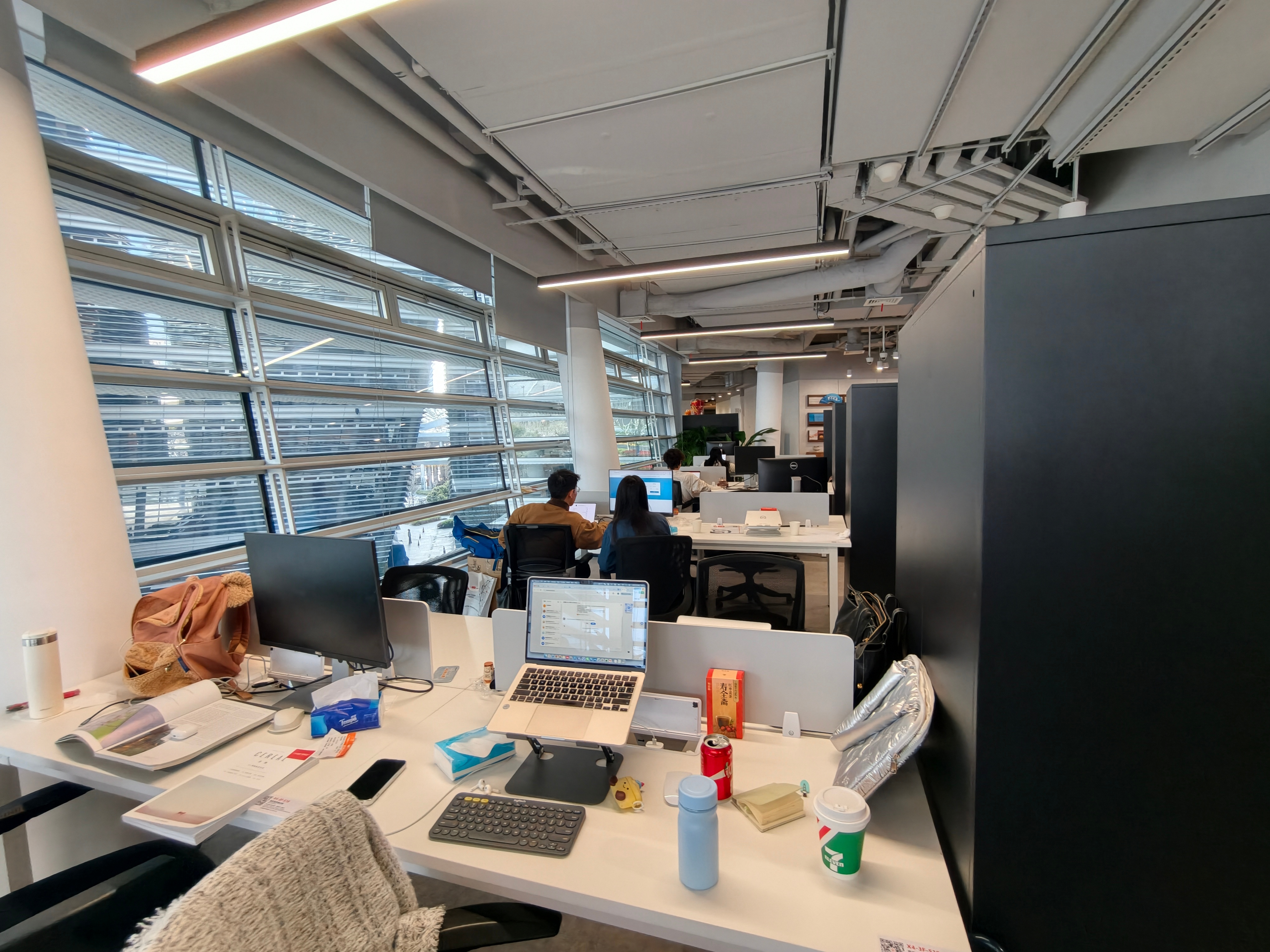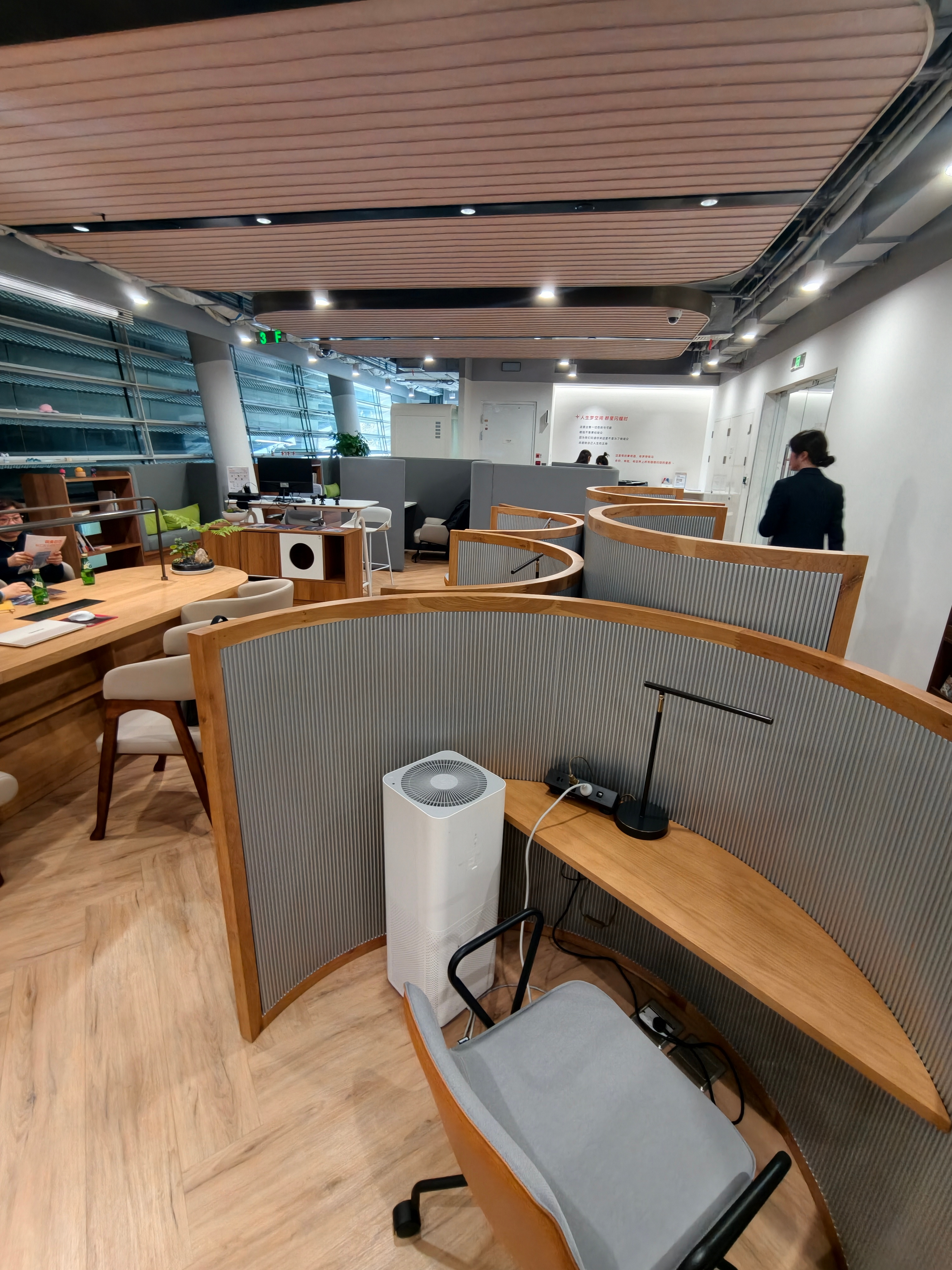 在这里,一个工位、一个月起租,价格是1500元起,这里的办公室,和阿里员工办公楼用的是一模一样的标准。