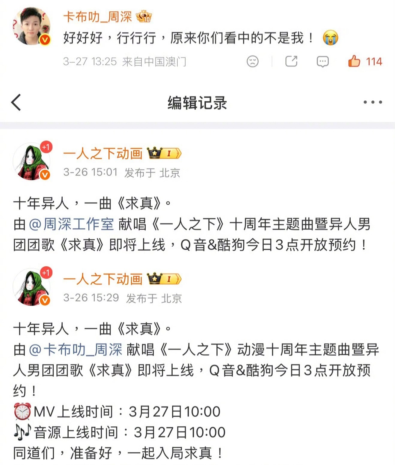 周深说原来你们看中的不是我周深工作室你们怎么这样啊,是你唱的吗赶紧好好哄吧,这个