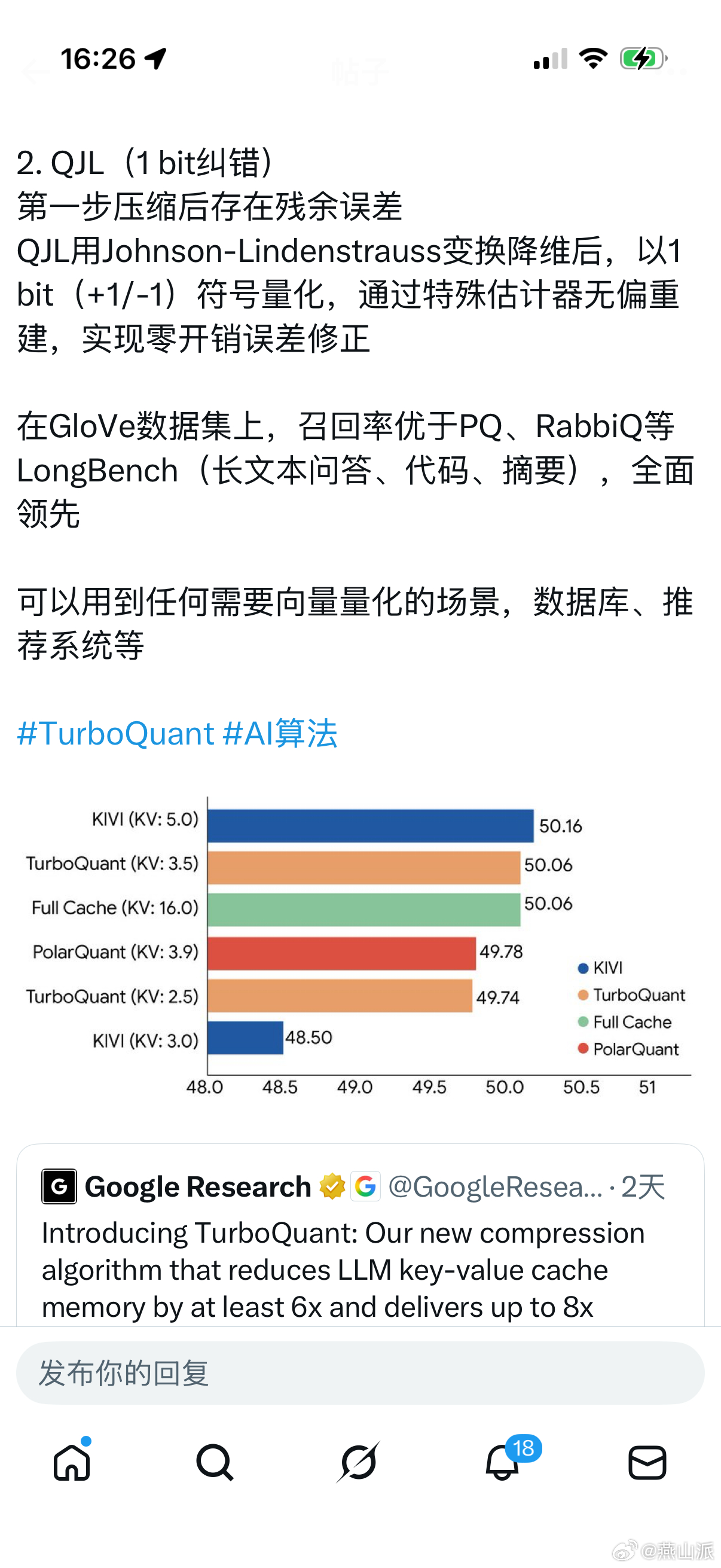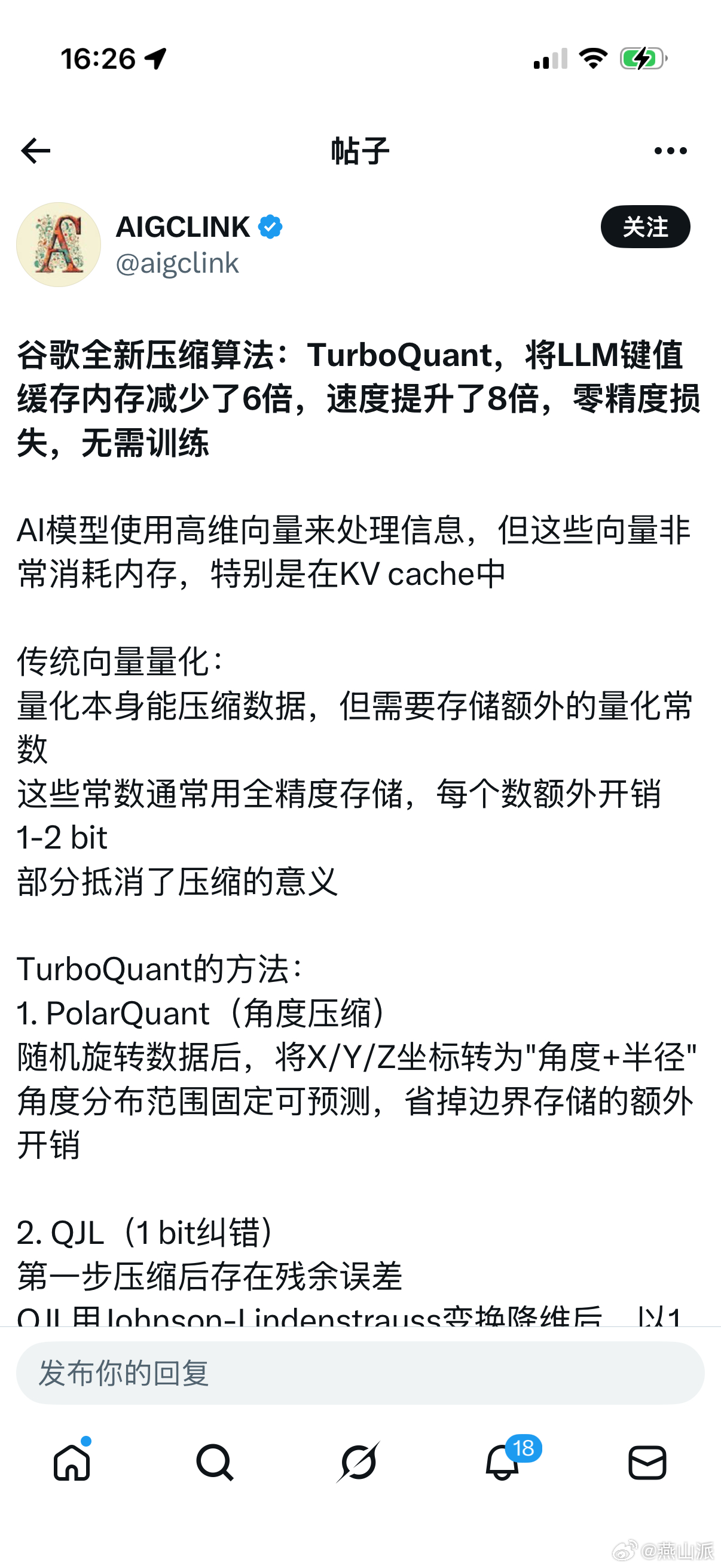 X上都在传谷歌发布了全新压缩算法-TurboQuant,这项技术可以直接将LLM键值缓存内存减少6倍,但速度提升8倍,而且零精度损失,无需训练。所以,内存价格是要下来了了吗?