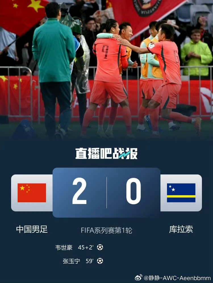 邵佳一执教国足首秀迎开门红!FIFA系列赛国足2-0力克库拉索,张玉宁、韦世豪联袂建功,新帅执教首战即获胜利,展现战术新意。下一战3月31日14点对阵世界第45喀麦隆,值得期待!国足国足赢了世界杯球队