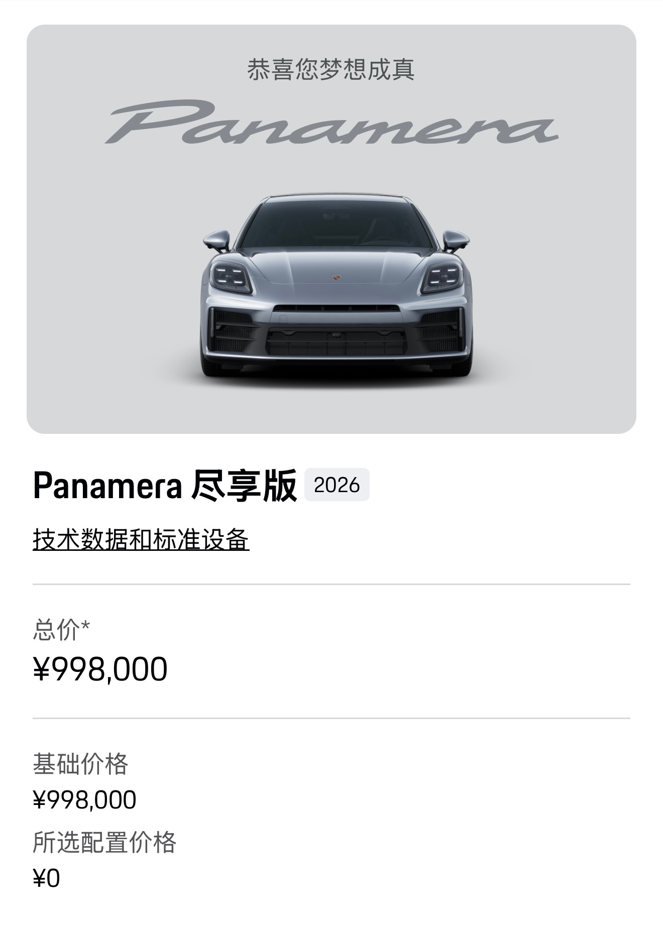 如果选配真一点儿都不碰,配置出一款售价低于百万的 Panamera,看起来竟然有点儿不错