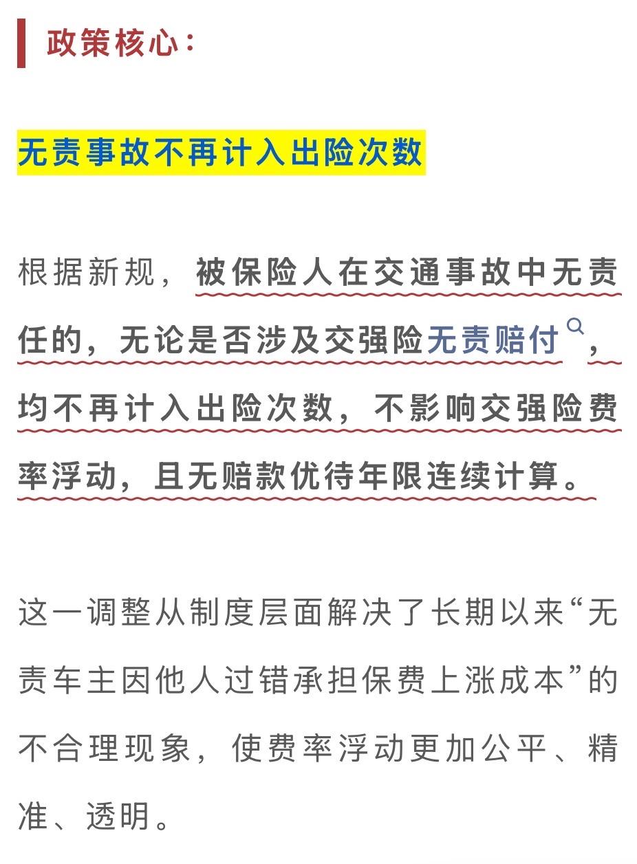 以前被追尾,无责还不敢走保险,怕涨保费只能私了;现在新规来了,无责报案理赔,明年保费一分不涨,优惠也不少!记住:6座以下基础保费还是950元,只看有责事故和严重违法,违停不影响;连续3年无责,5座车每年能省285元!