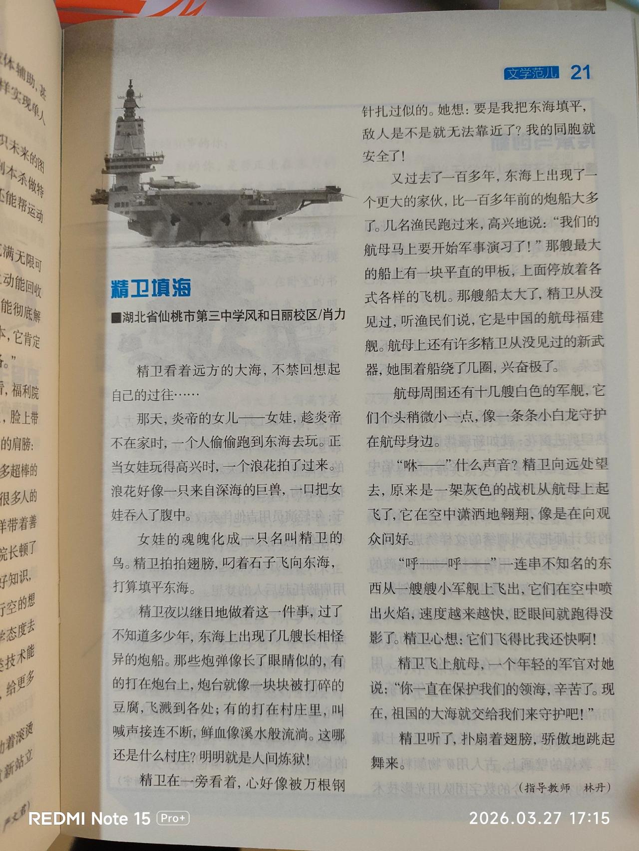 收到肖力发表的作文。2026018成果。祝贺!感谢编辑老师的推荐![碰拳][碰拳][碰拳]