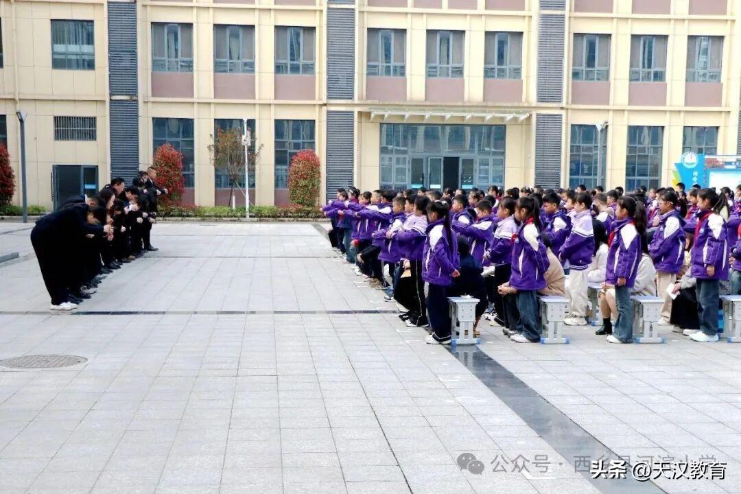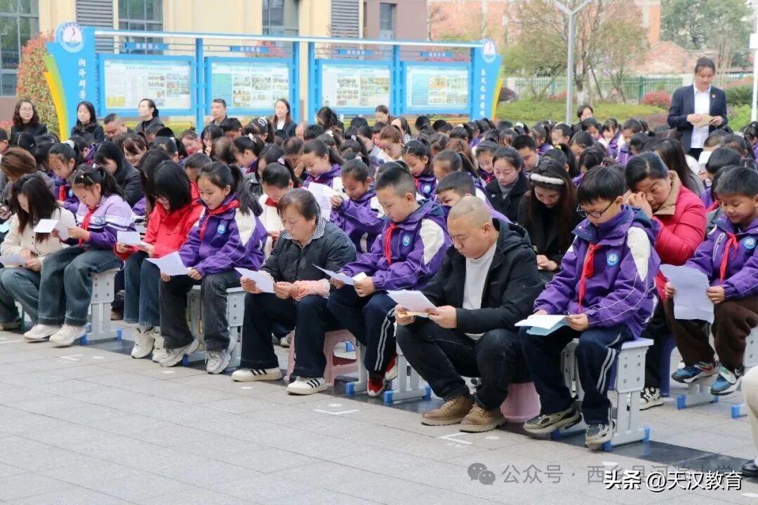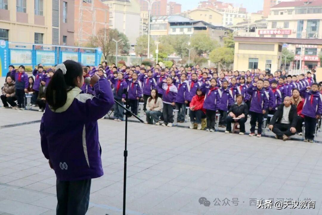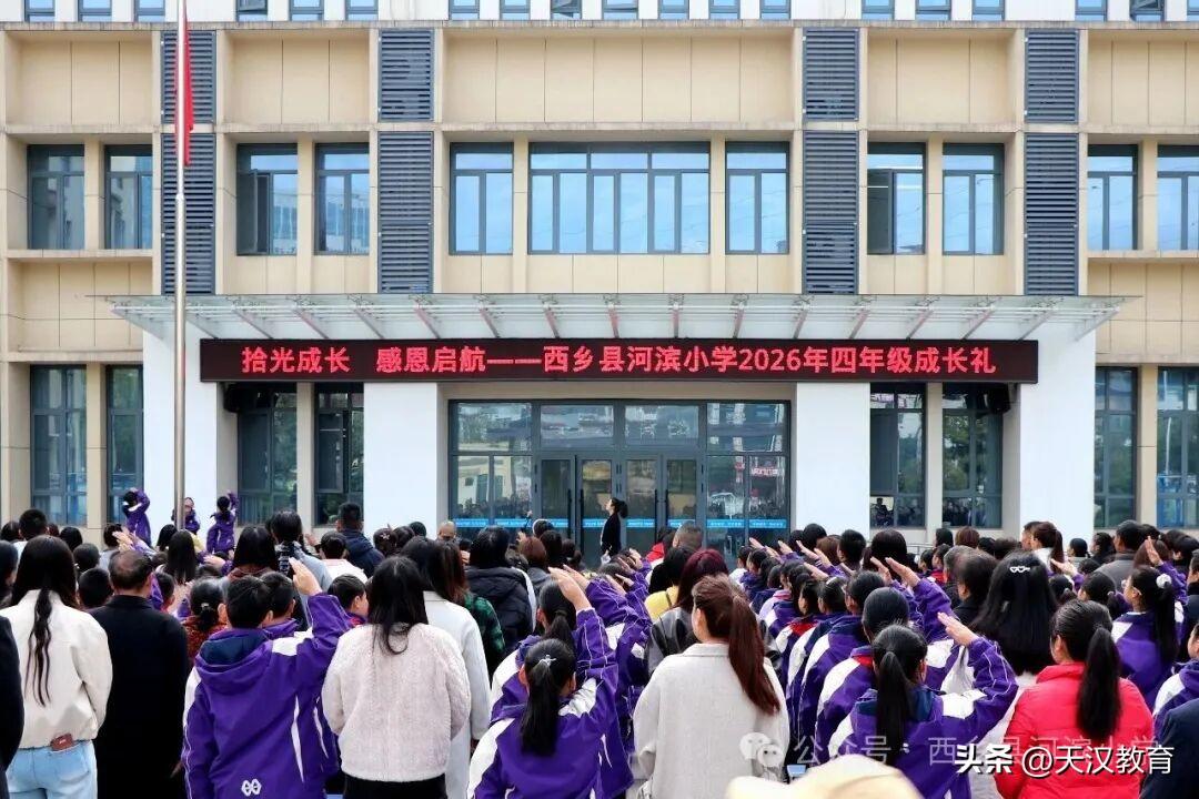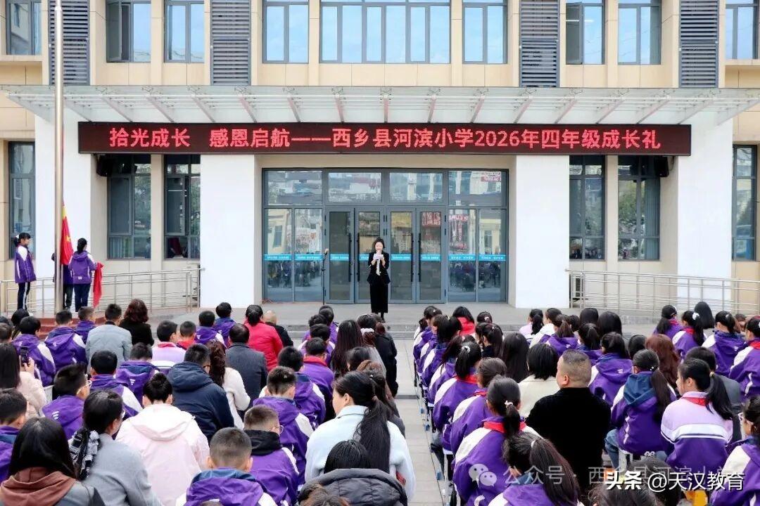 3月26日,西乡县河滨小学举行了主题为“拾光成长 感恩启航”的四年级成长礼活动。 第一篇章:师长寄语,殷殷期盼 活动在庄严的氛围中拉开帷幕。伴随着主持人热情洋溢的开场,全体人员肃立,升国旗、奏唱国歌,激昂的旋律激荡着爱国情怀。党支部书记、校长刘兴军深情寄语全体同学,勉励大家做“勤学善思的小探索家”“体魄强健的小勇士”“传承文化的小使者”“有担当的小公民”,以崭新姿态迎接十岁这一人生新起点。教师代表唐晓霞温情回顾了与孩子们朝夕相处的点滴;家长代表四(3)班余明昊同学的妈妈分享了陪伴孩子成长的感悟,她真诚感谢学校的悉心培育,并送上了温暖的祝福。 校长致辞 第二篇章:感恩同行,立志成长 在感恩环节,全体学生面向父母深深三鞠躬,并互换感恩信与成长信,平日里难以言说的爱与期许在字里行间流淌,许多家长和孩子都红了眼眶、热情相拥。随后,全体学生向老师们深深鞠躬,行谢师礼,传递着尊师重道、薪火相传的美德。在四(1)班李婉如同学的领誓下,全体学生庄严宣誓,铿锵的誓言展现出河滨学子奋发向上的精神风貌。最后,全场高呼“十岁成长——我能行!”自信的呐喊将活动气氛推向了高潮。 第三篇章:共享甜蜜,礼成落幕 副校长李如高致闭幕词,为同学们送上成长祝福。活动最后,迎来了寓意深远的走“成长门”环节。在班主任的带领下,孩子们与家长手牵手,昂首阔步地走过象征着告别懵懂、迈向少年的“成长之门”,为本次活动画上了圆满的句号。 走过成长门 此次活动,不仅让孩子们深刻体会到了父母的养育之恩、师长的教诲之情,更激发了他们心怀感恩、立志笃行的内生动力。相信河滨小学的全体四年级学子定能以此为新的起点,不负韶华,茁壮成长,用勤奋与担当书写人生的崭新篇章!
