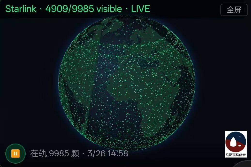 目前在轨的星链卫星是9985颗。