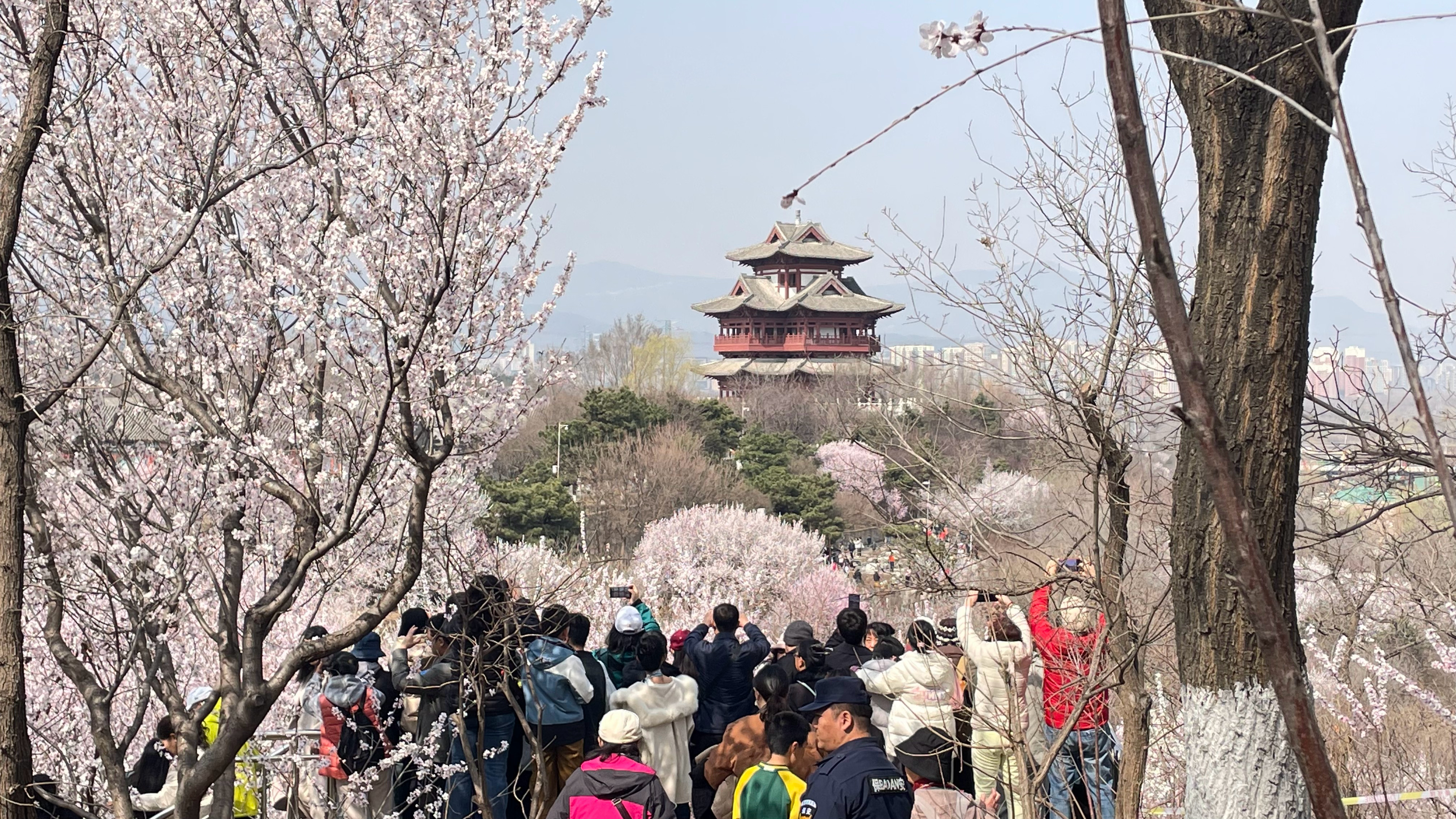 桃花流水窅然去,别有天地非人间。北京柳荫公园山桃花盛开。 摄影北京春至人间