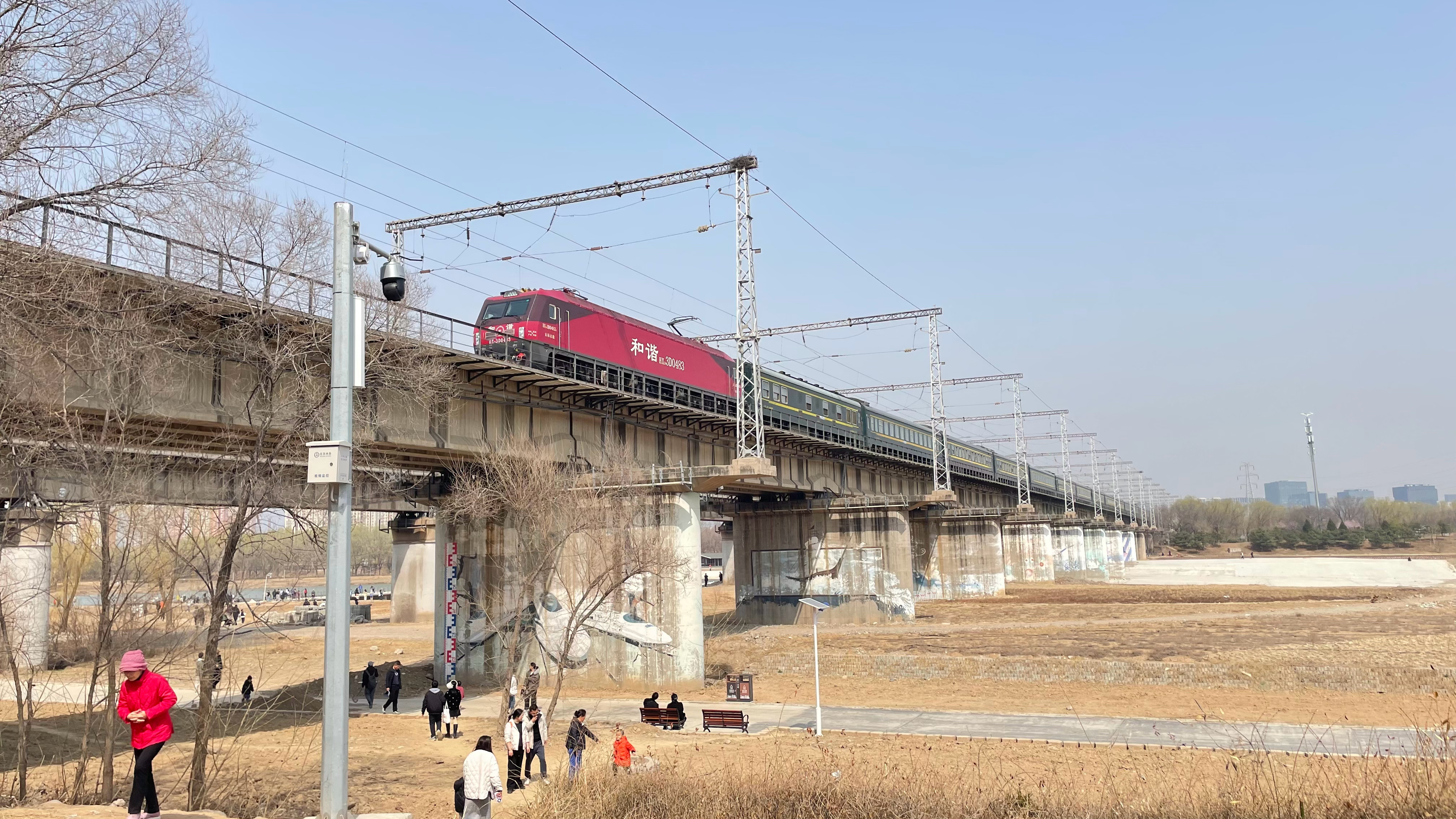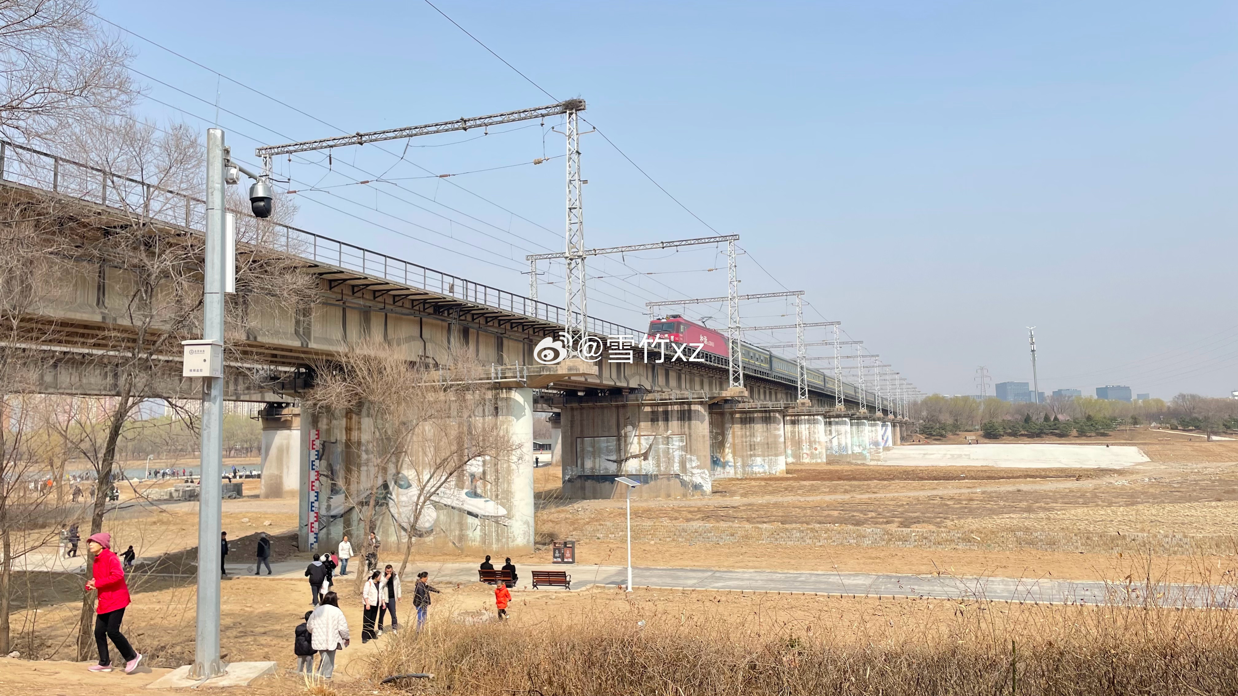 暖日熏园万紫稠,桃花谷里香自流。铁龙掠影跨河去,满岸柳烟拂画舟。 摄影