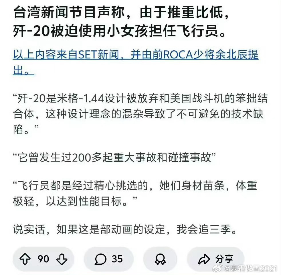日耳曼赢学 前🐸少将余北辰继PAC拦截率210%概率学暴论之后的最新暴论,J20飞行员用小女孩,J20抄袭米格1.44➡️米格设计局总师亲自辟谣参考: 网页链接