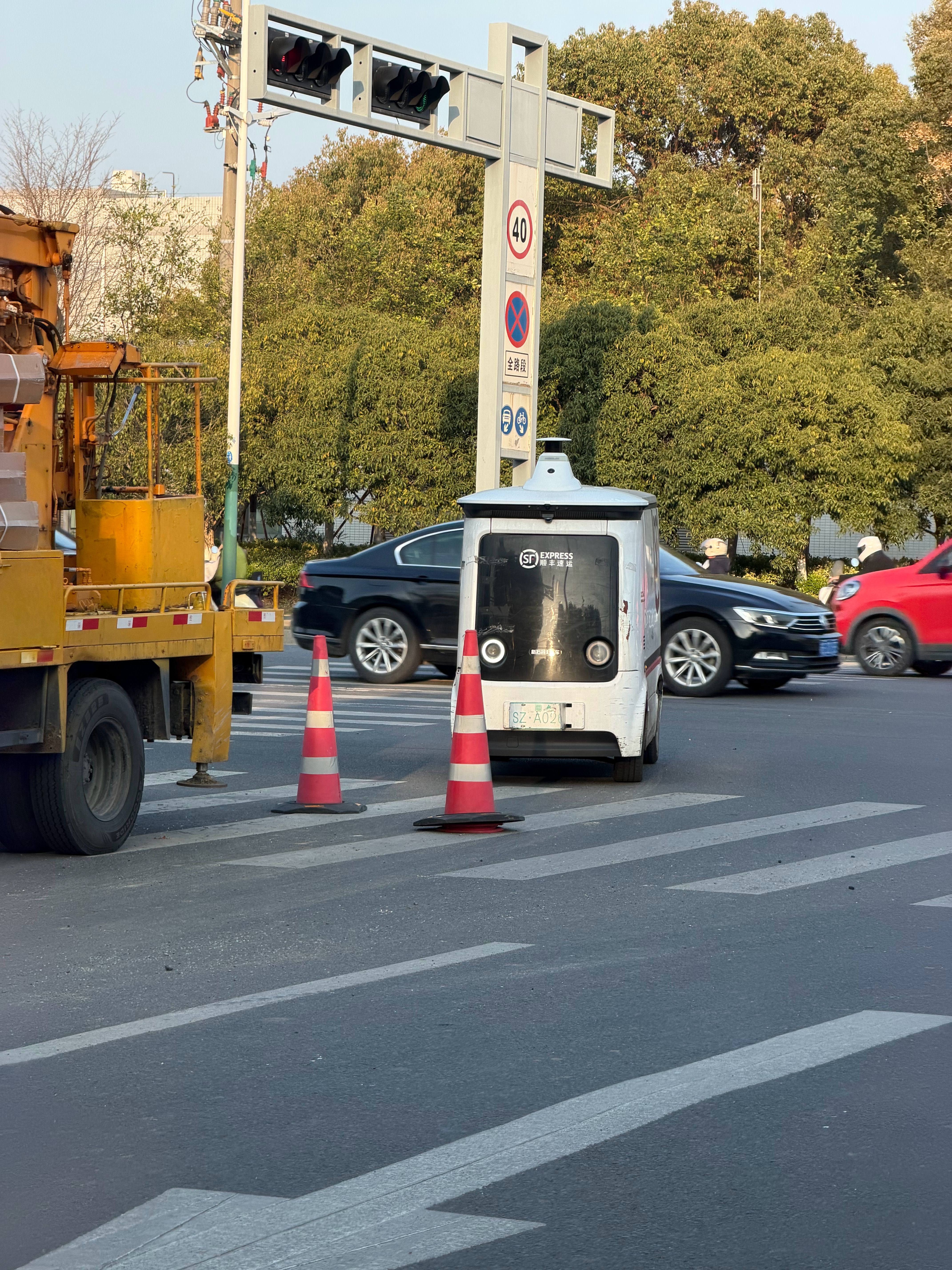 这个顺丰小车好可怜,被桩桶挡的动弹不得苏州