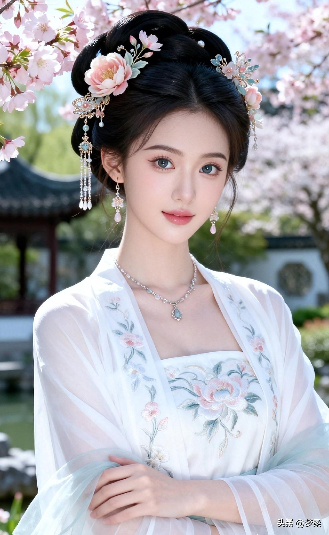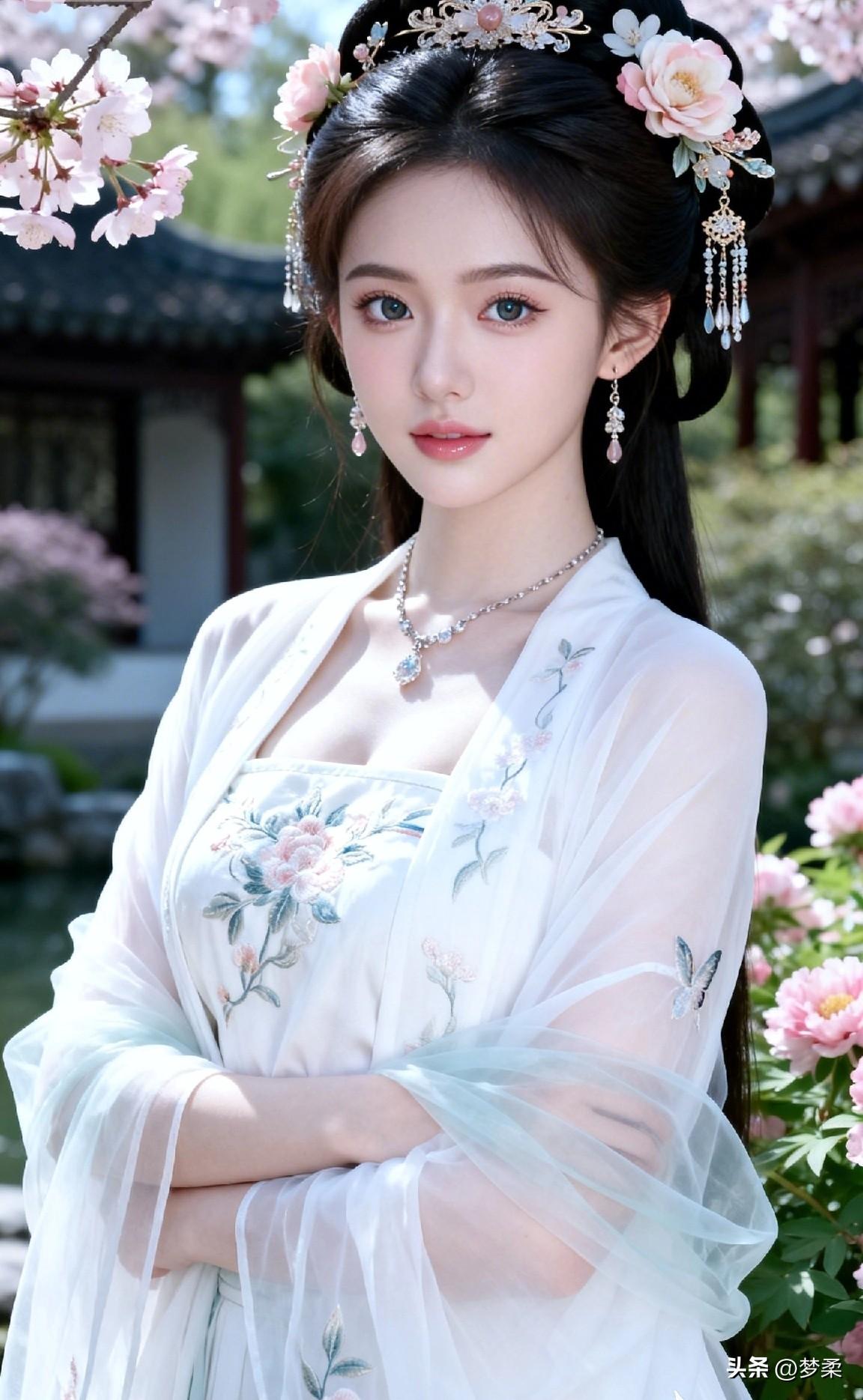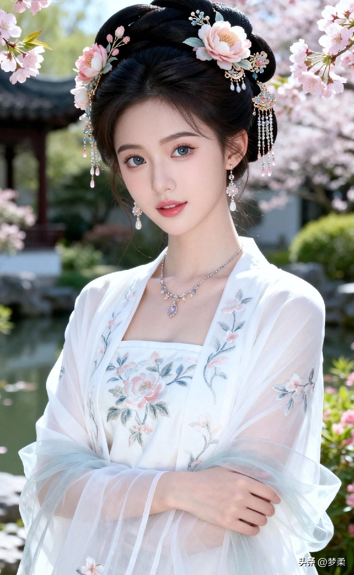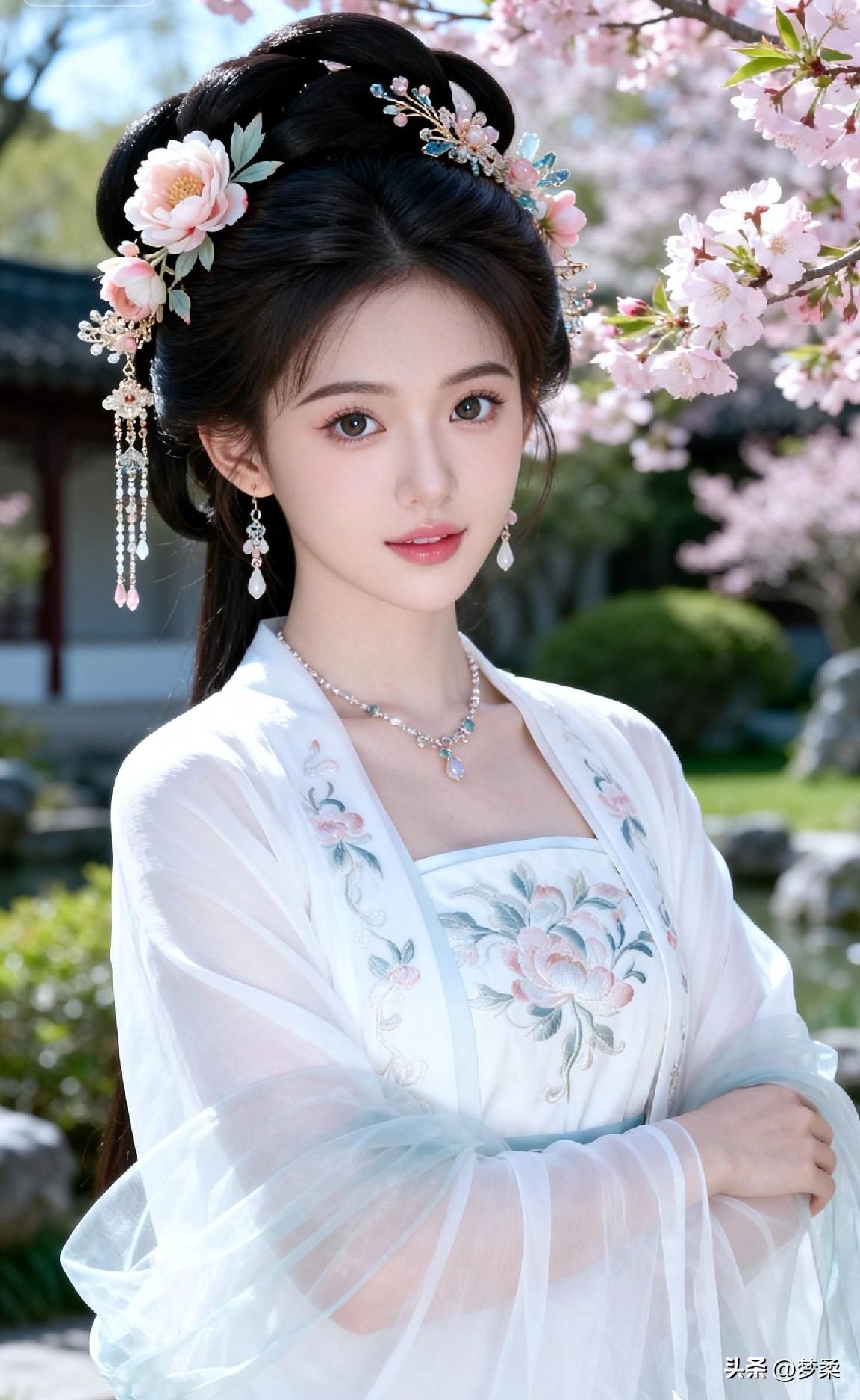 古风少女,花间漫步,梦回大唐