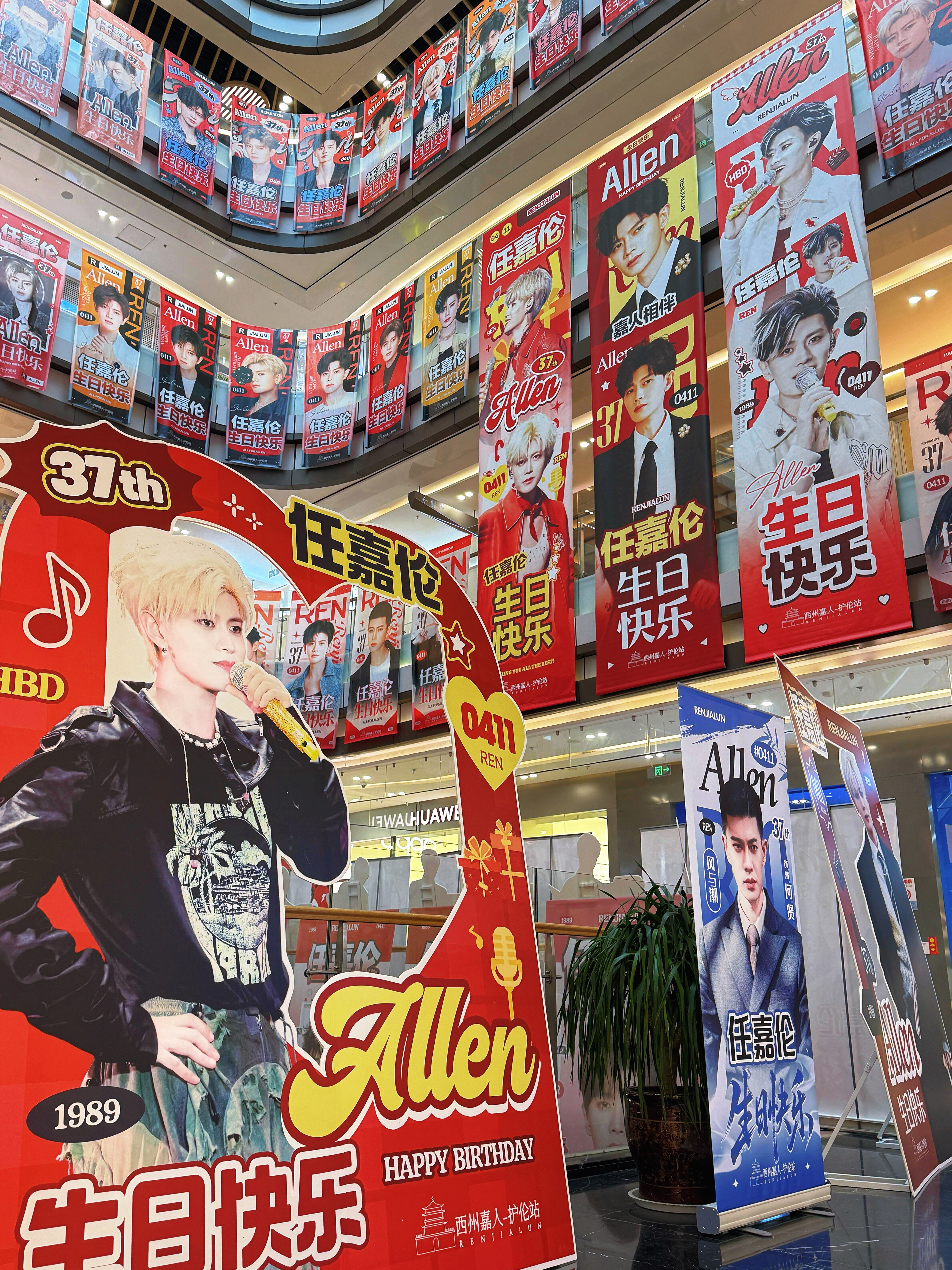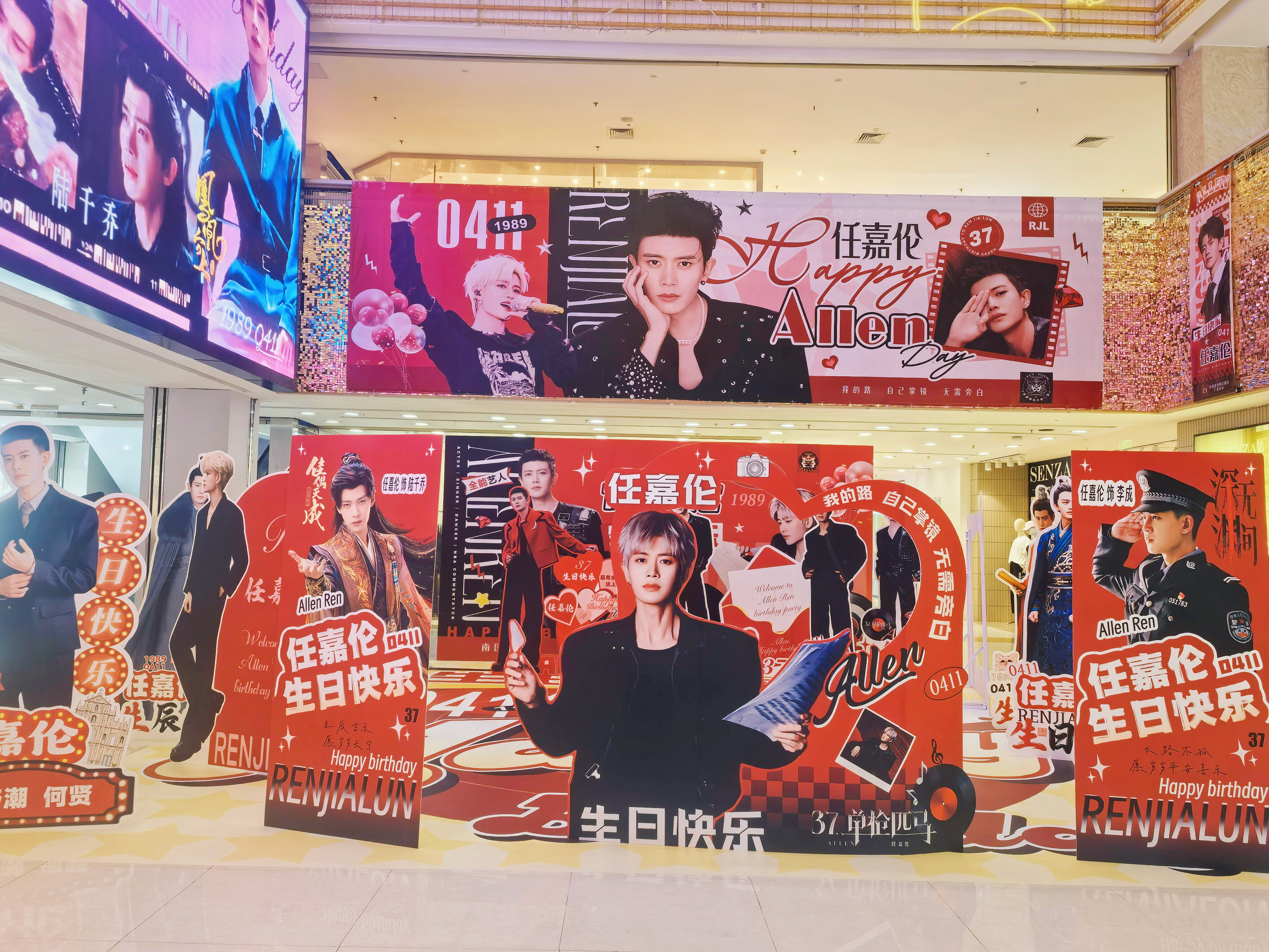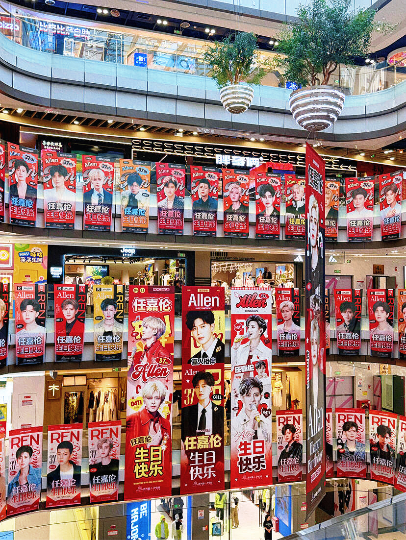 任嘉伦37岁生日各地应援痛楼粉丝对超哥的爱太浓烈了密密麻麻的整个商场全是帅照❗️