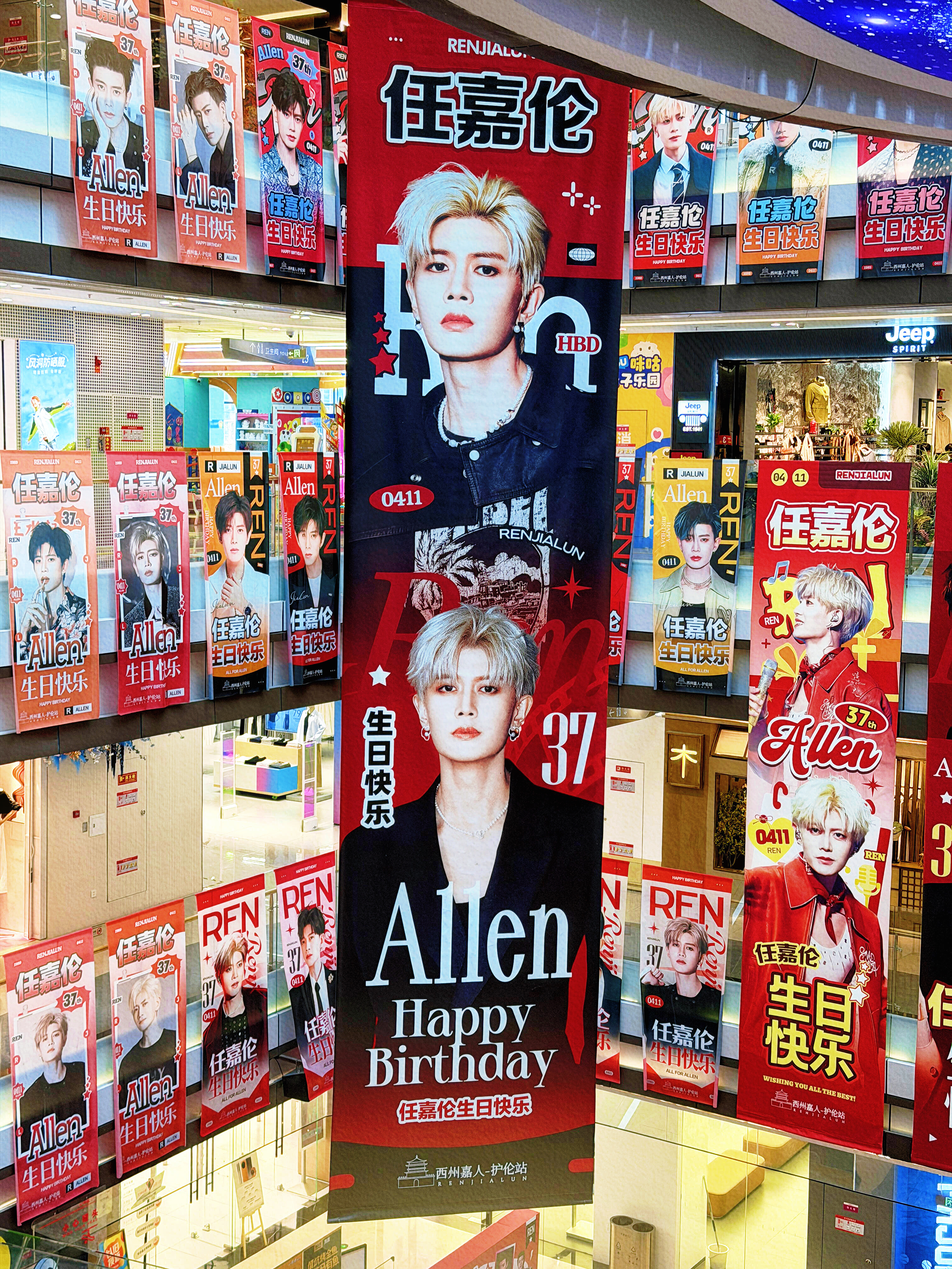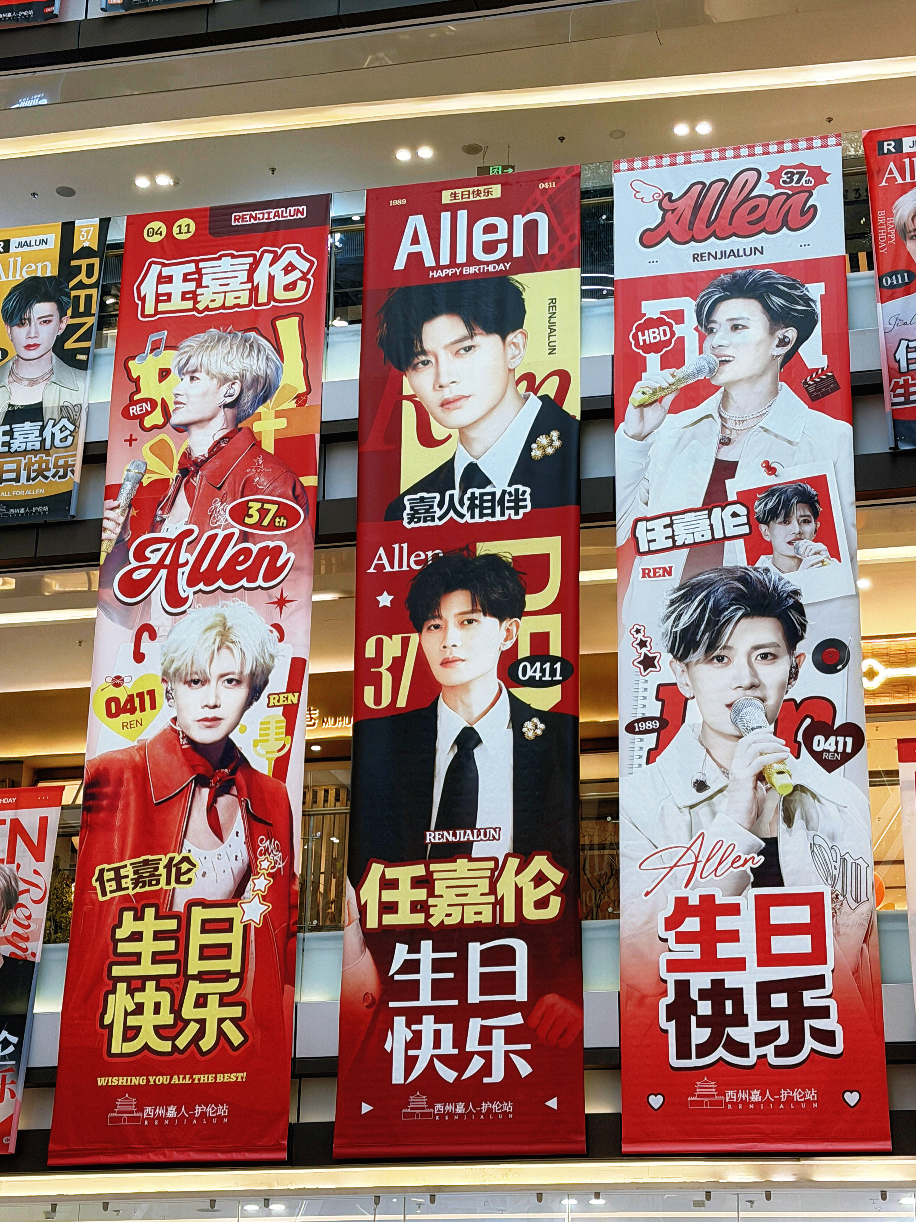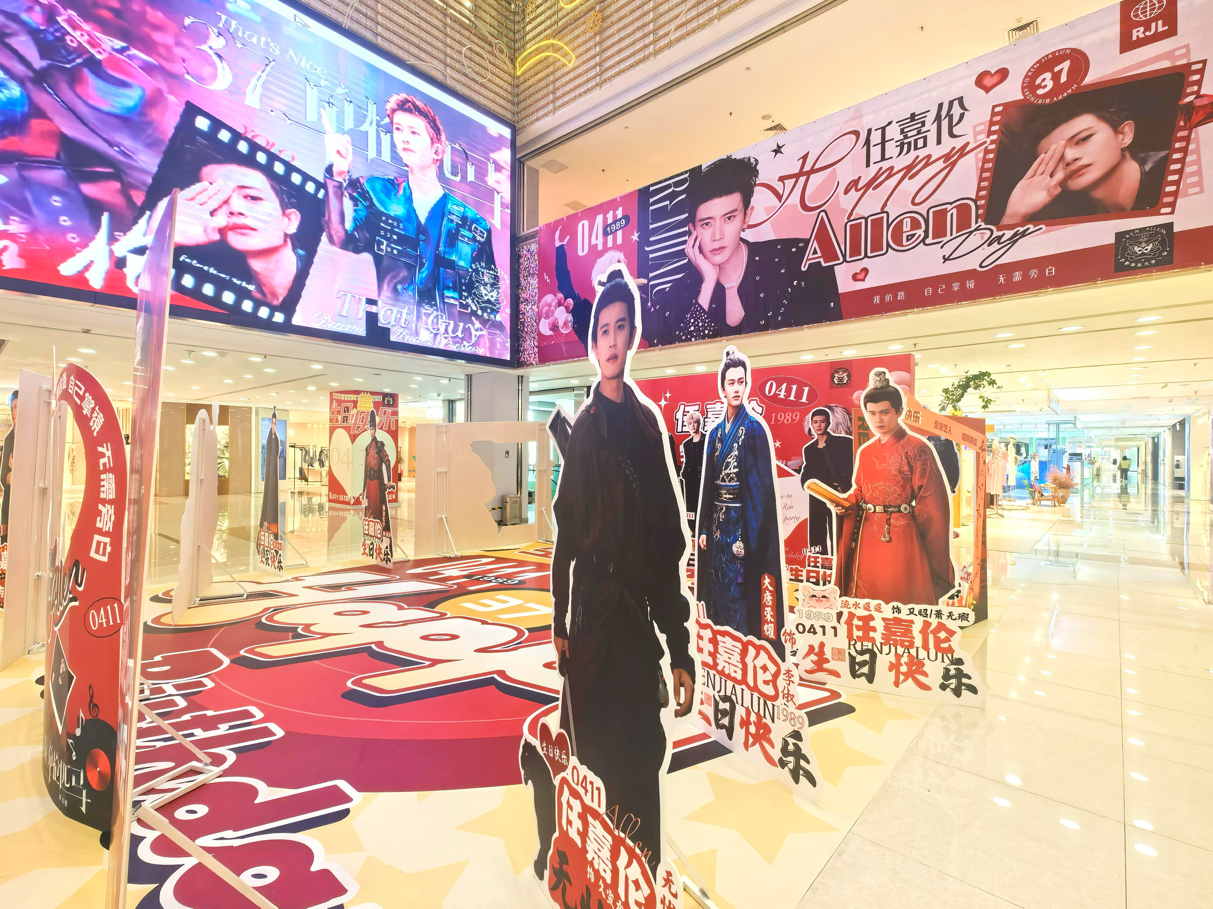 任嘉伦37岁生日各地应援痛楼粉丝对超哥的爱太浓烈了密密麻麻的整个商场全是帅照❗️