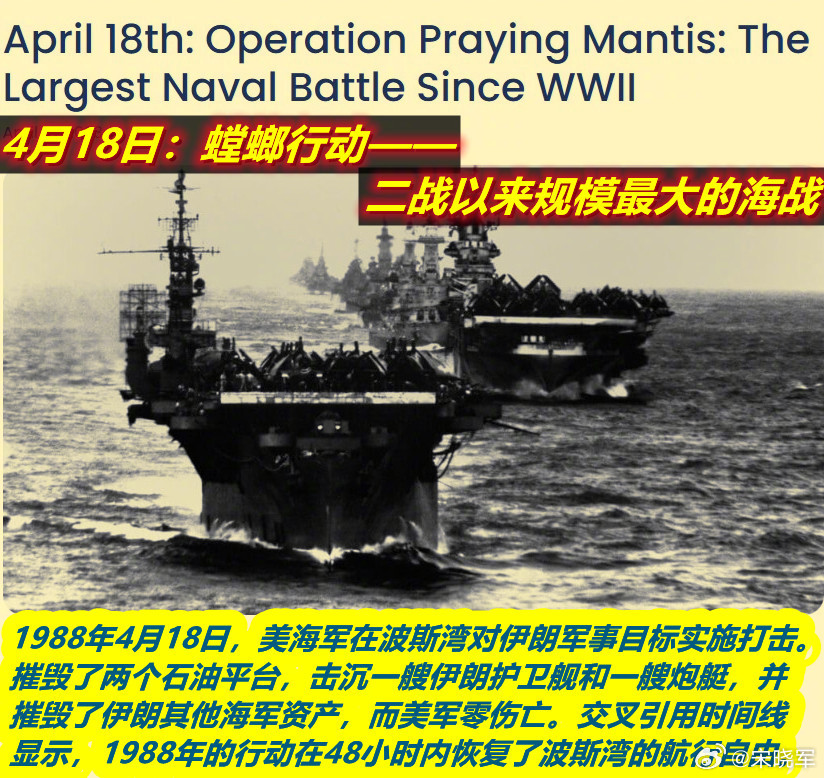 图1:1988年3月20日我拍摄的人民海军距目前最近的一次海上战斗——“3.14海战”的参战人员;图2/3:约一个月后,美海军在波斯湾打了二战后的最大海战——“螳螂行动”,为此我当时还专门写了分析;图4:时间快进到如今,伊朗革命卫队海军经多次“军改”已将波斯湾+霍尔木兹海峡打造为“堡垒区”(含收费站)让两艘美航母难以靠近。相比之下,38年后的人民海军,在南海、台海的各种维权、演习行动,已今非昔比了