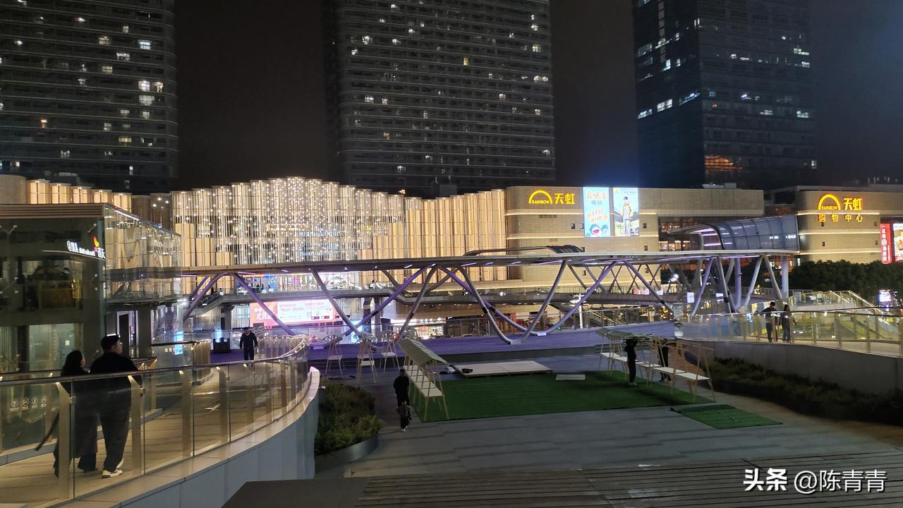 苏州相城天街未来环夜晚景色。未来环是在相城大道与纪元路交叉口上,架起一座天街连接天虹商超人行天桥,名字时尚霸气,叫未来环。来逛街还是挺大的。
