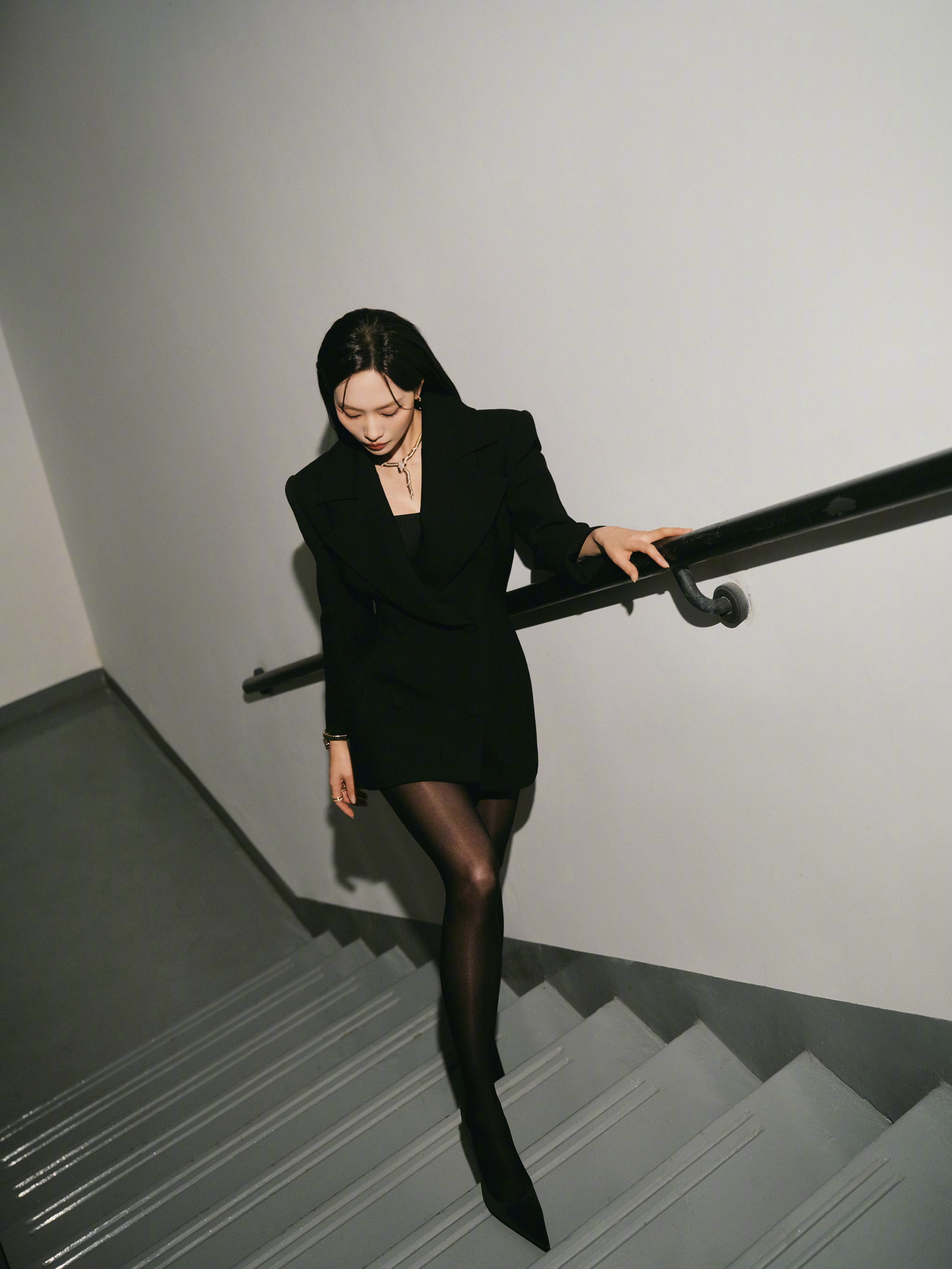 王霏霏楼梯间秀黑丝