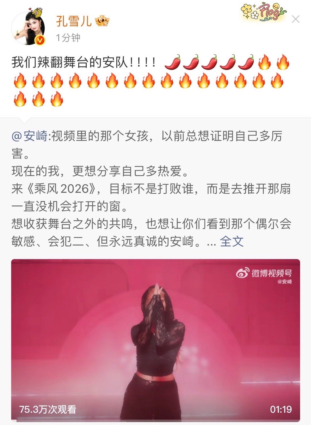 孔雪儿支持安崎哇!孔雪儿给安崎打call啦!!!