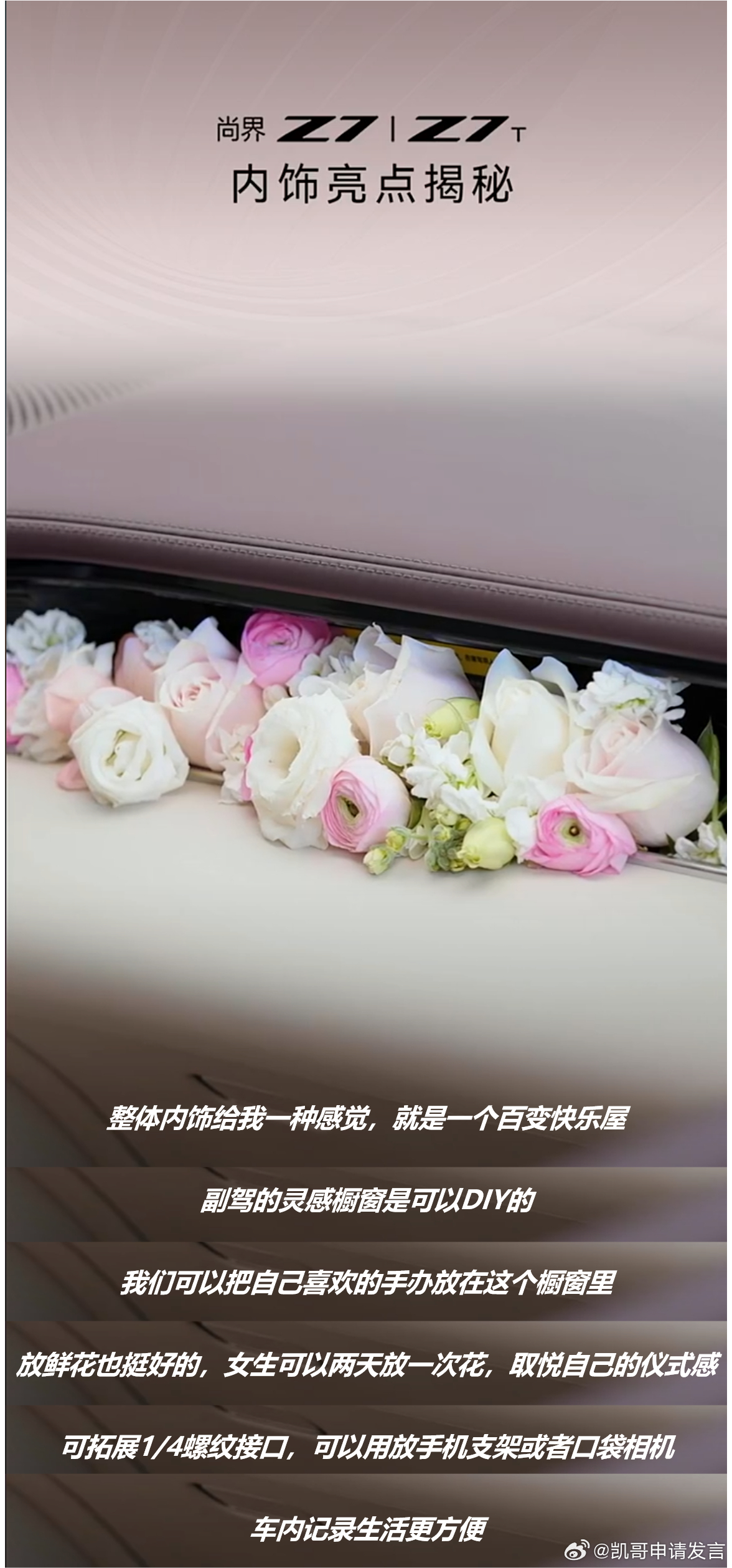 尚界Z7内饰亮点揭秘 尚界Z7、Z7T实车内饰首次曝光。“随行美容舱”功能又是鸿蒙首创,在兼顾保湿护肤和杀菌抑敏的同时,更能防晒黑防晒老。“百变快乐屋”通过磁吸贴合带来百变拓展妙用,充分利用了前后排20多处储物空间。尚界Z7不只是颜值长到年轻人的心上了,这“随行美容舱”的功能估计也会成为年轻人的最爱。尚界Z7随行美容舱