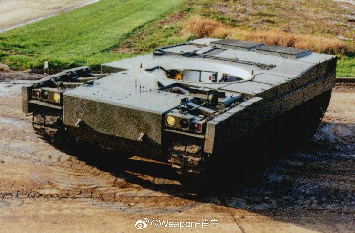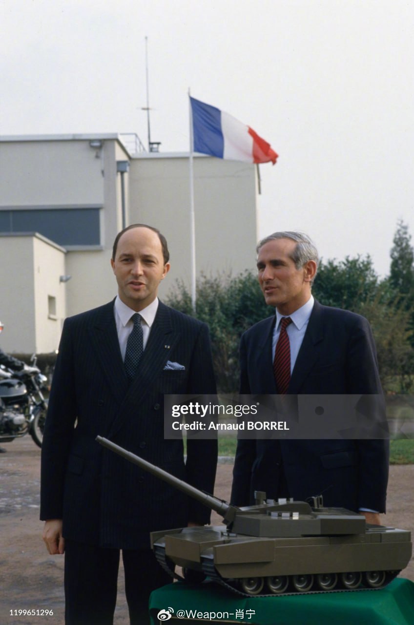 烽火问鼎计划照片中的历史 图1:1986年1月30日,法国总理洛朗·法比尤斯与国防部长保罗·基莱斯一同观摩勒克莱尔主战坦克的早期(1980年代P48方案)全尺寸模型。(Gamma-Rapho via Getty Images)图2、2 BR试验台展示了车体装甲结构的矩形构型以及驾驶员舱盖的侧开式运动机构。驾驶员舱盖未超出首上装甲的水平部件轮廓,开启时会滑移至履带护板上方空间,这种设计使舱盖能够做得厚重且防护性良好。1983年,采用双人扁平炮塔的TC2方案被选定为未来主战坦克的主要发展方向。TC2即“常规炮塔2”(Tourelle conventionnelle 2),是坦克的第二种构型方案,采用经典布局并配备自动装弹机。P48方案的坦克外观效果可参见图示。为验证各项技术,研发团队建造了多种试验台架与模型:1 BR与2 BR用于测试搭载“超高压”系统(hyperbar)的1500马力发动机、自动变速箱及扭杆悬挂系统。3 BR模型则用于测试液气悬挂、VEDYS(动态悬挂试验车)及其他技术方案。需说明的是,BR系列(滚动试验台)并非勒克莱尔坦克的直接原型,其主要任务是验证P48与TC2概念。勒克莱尔的直接前身是“Le Mulet 完整系统”试验车(简称MSC),用于全面评估未来勒克莱尔坦克的各项性能(机动性、火力、防护能力)。