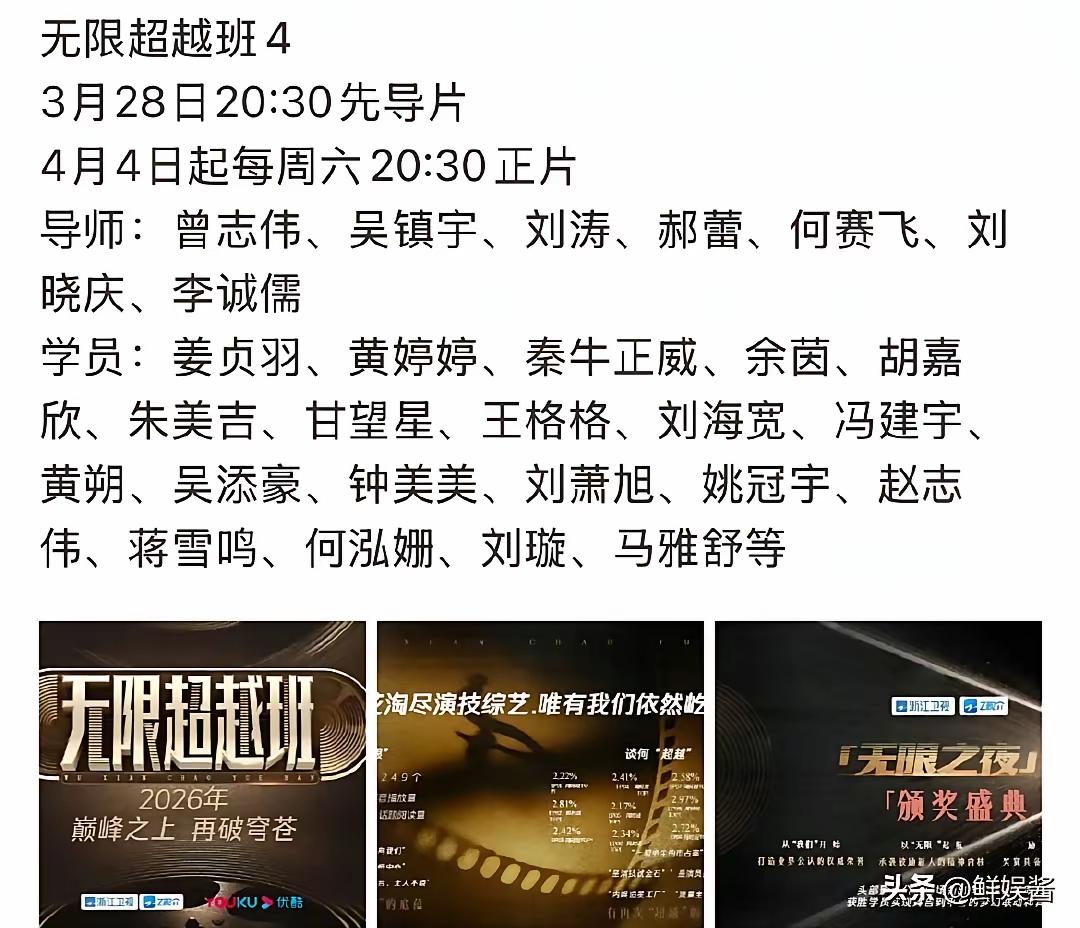 《浪姐7》《无限超越班4》同一天公布嘉宾阵容,这是要打擂台,抢观众吗? 《浪姐7》《无限超越班4》同一天公布嘉宾阵容,这是要打擂台吗? 这两档综艺,一直以来都备受观众瞩目,这一次两档节目同时推出,一个4月3号开始,一个4月4号推出,真是要来抢观众的吗? 据说《浪姐7》可是全程直播,无论是演员,歌手,还是跨界人员,都有很大的考验哦。 对于我们观众来说,更喜欢看真实的真人秀! 而无限超越班在原来5人监制的基础上,又增加了刘晓庆和何赛飞这两个敢说敢做的监制,也是有新看点的哦。 大家觉得是《浪姐7》更多人喜欢看呢,还是《无限超越班4》更有人看呢?