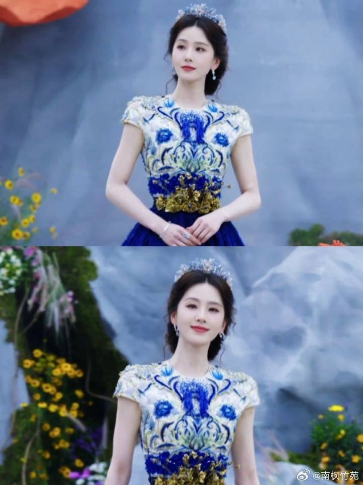刘诗诗戴粉丝送的龙葵饰品走红毯刘诗诗17年后龙葵成女王了刘诗诗穿蓝金礼服好优雅, 还戴着粉丝送的龙葵饰品,一下子就拉回童年回忆,完全是女王版龙葵