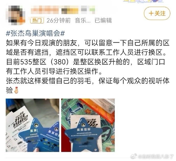 张杰鸟巢演唱会主动更换视线遮挡区粉丝视线被遮挡,杰哥主动更换位置,好暖心🥰张