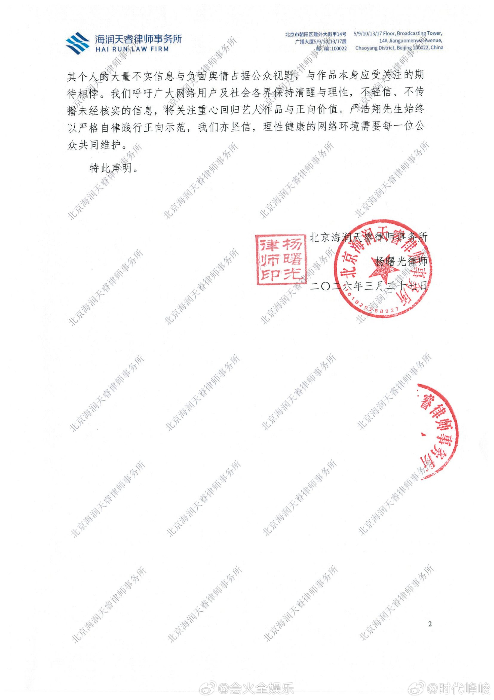 时代峰峻发布律师声明回应严浩翔ktv传闻时代峰峻否认严浩翔ktv传闻时代峰峻回应