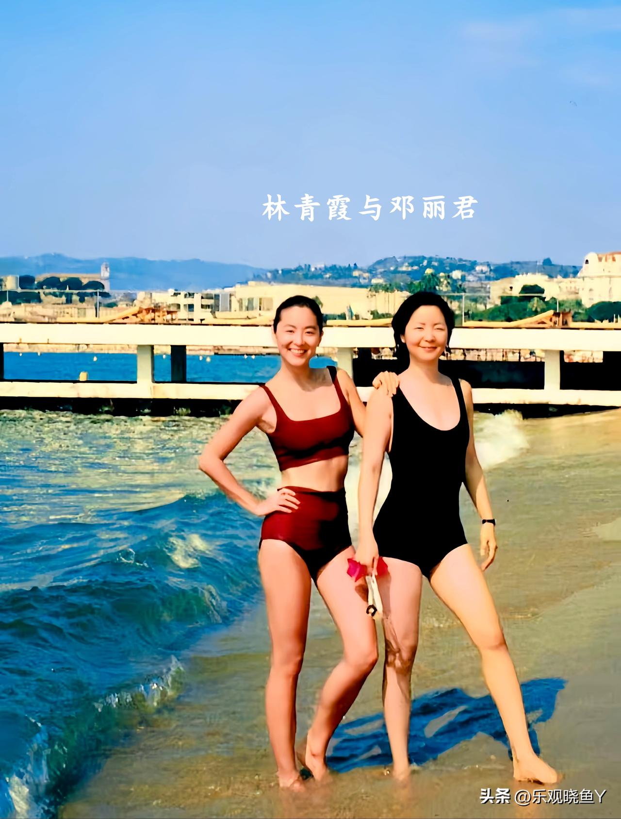 一代女神林青霞老照片: 与甜歌皇后邓丽君的合影。照片拍摄时间是1990年林青霞与邓丽君去法国度假期间,此时的林青霞36岁,邓丽君37岁。照片中二人站在南部的沙滩上其乐融融,画面也十分的温馨,两位女神的容颜的确是惊艳了时光~