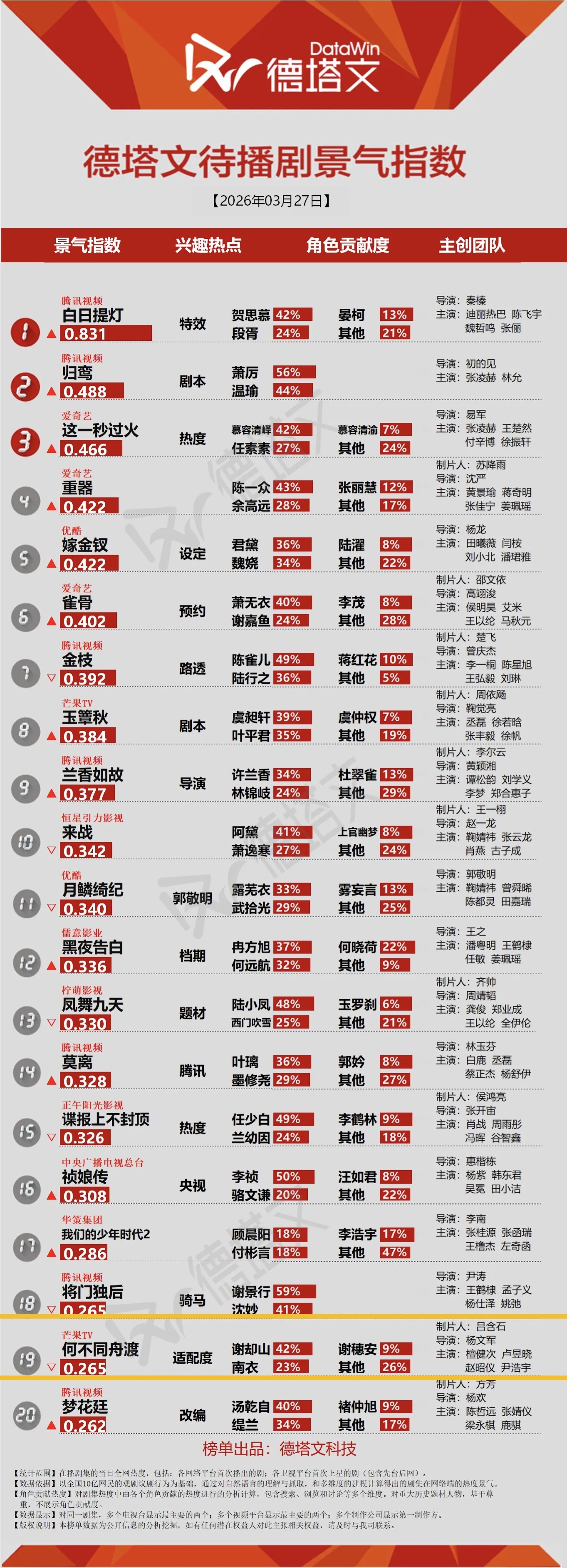 3月27日待播剧景气指数
